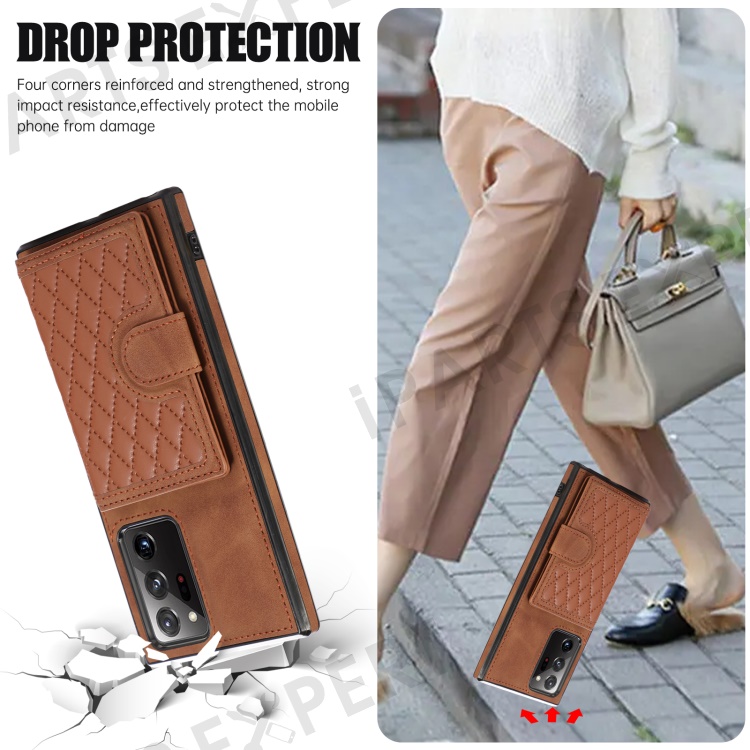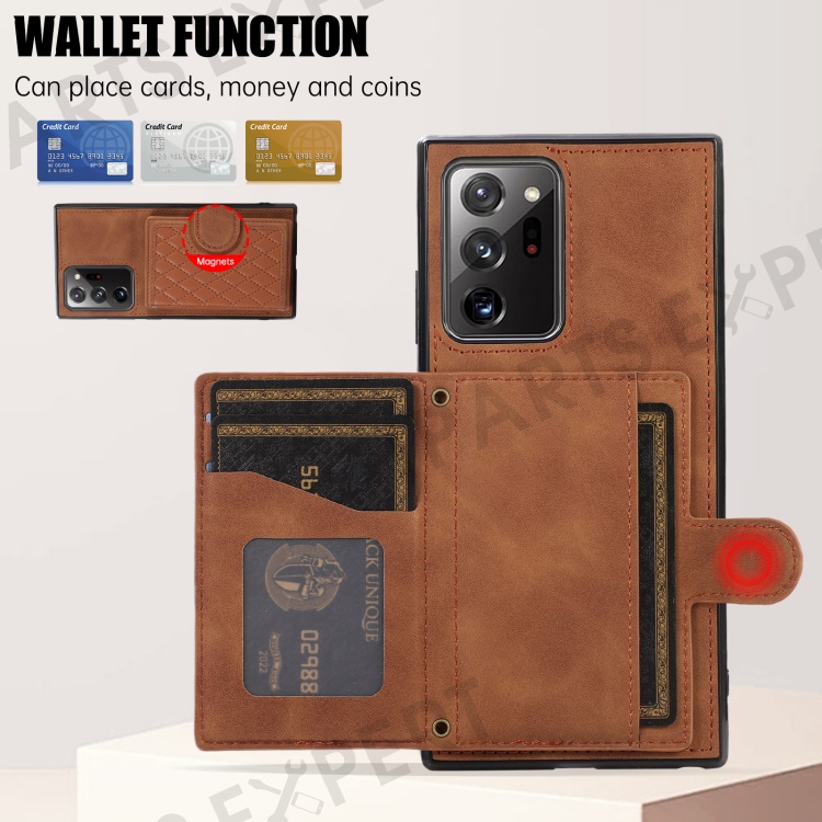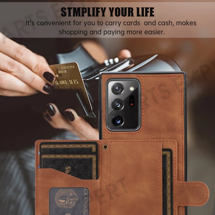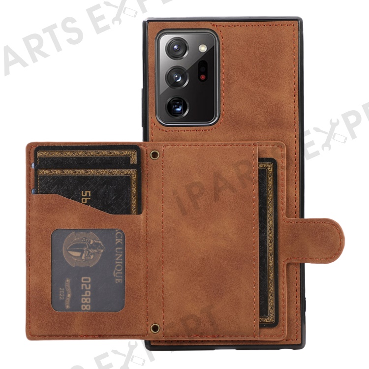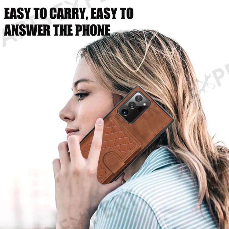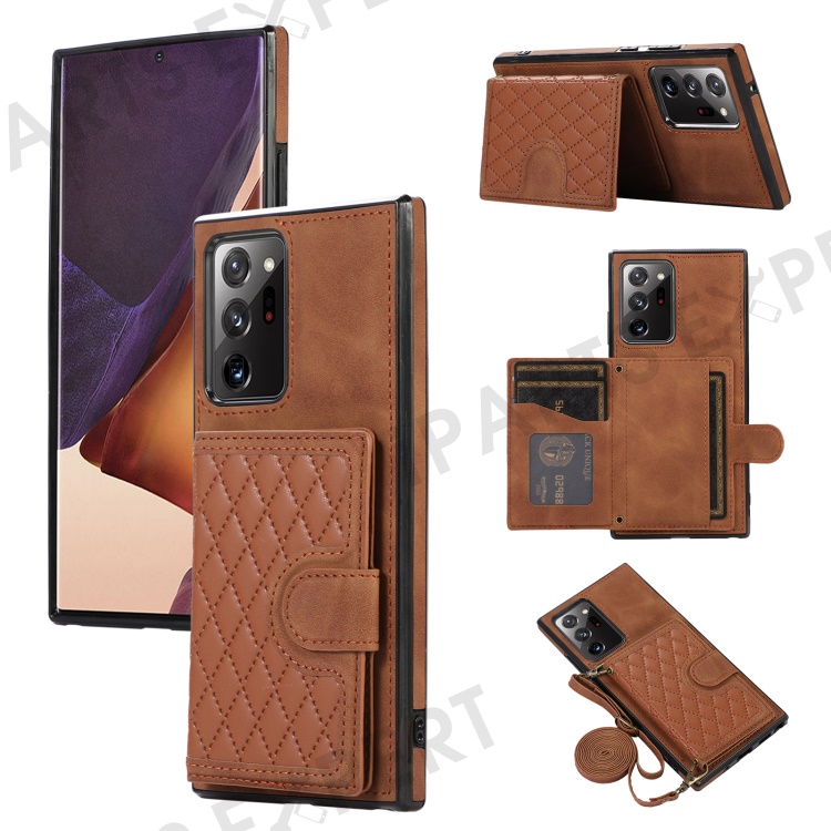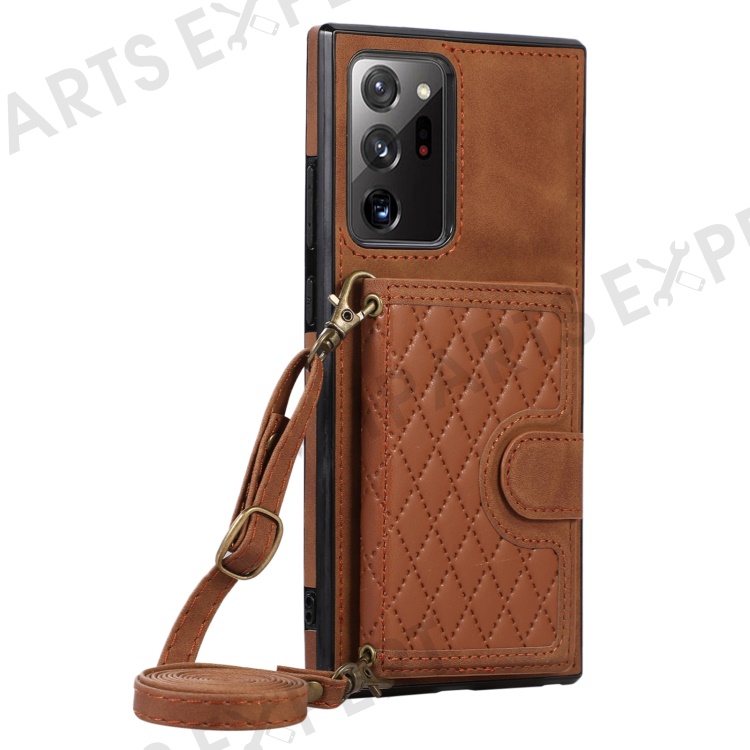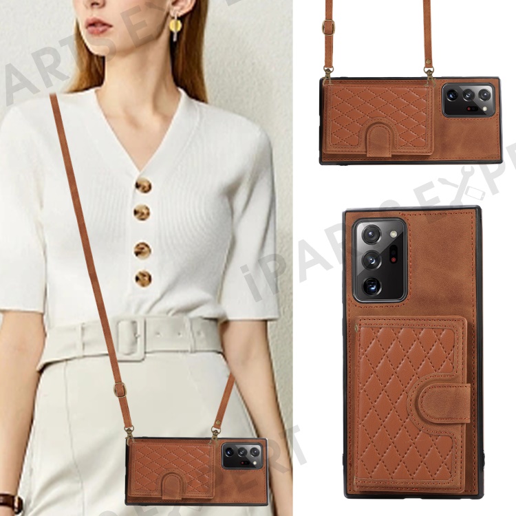 For Samsung Galaxy Note20 Ultra 5G / Note20 Ultra Shoulder Phone Pouch Card Case TPU+PU Leather Cover - Brown