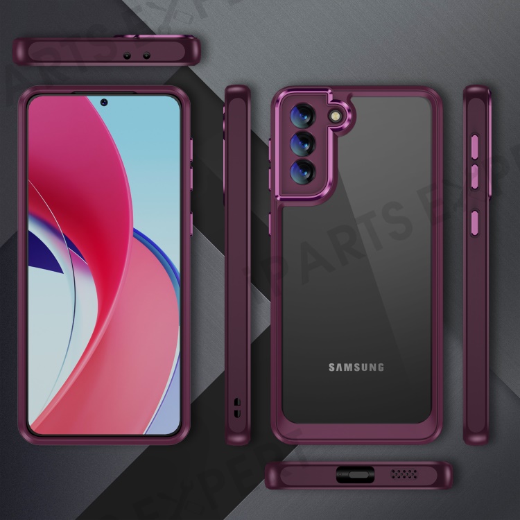 For Samsung Galaxy S21 5G Clear Case Acrylic + TPU Hybrid 2-in-1 Shockproof Phone Cover - Rose