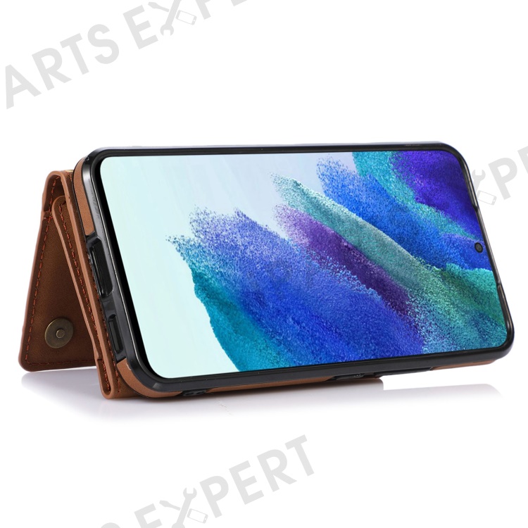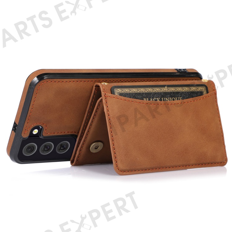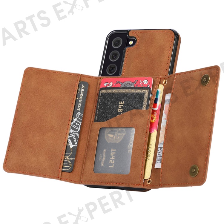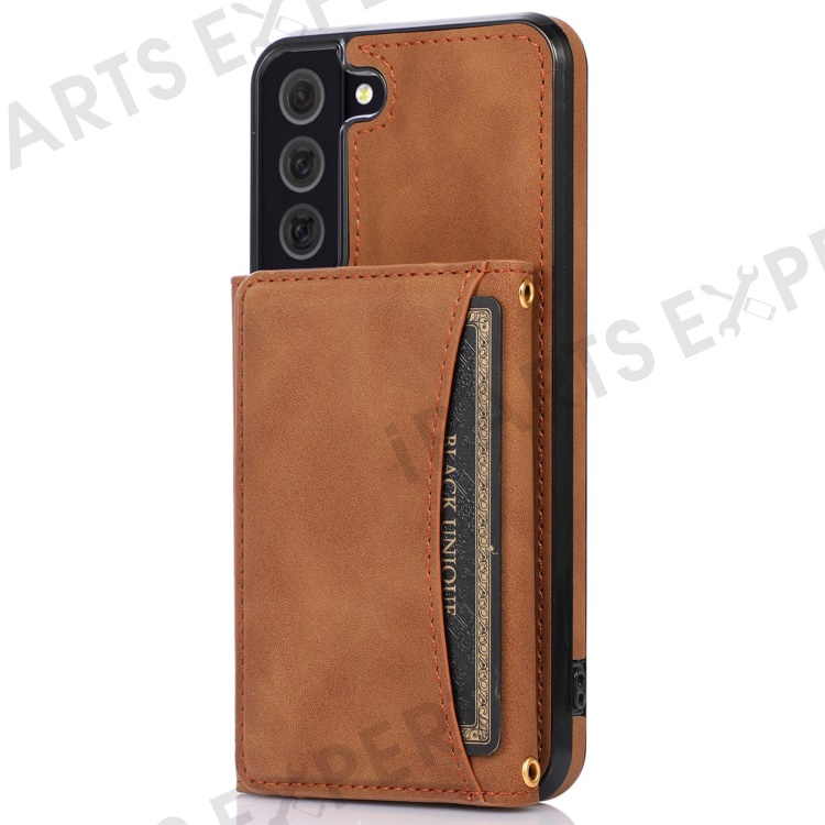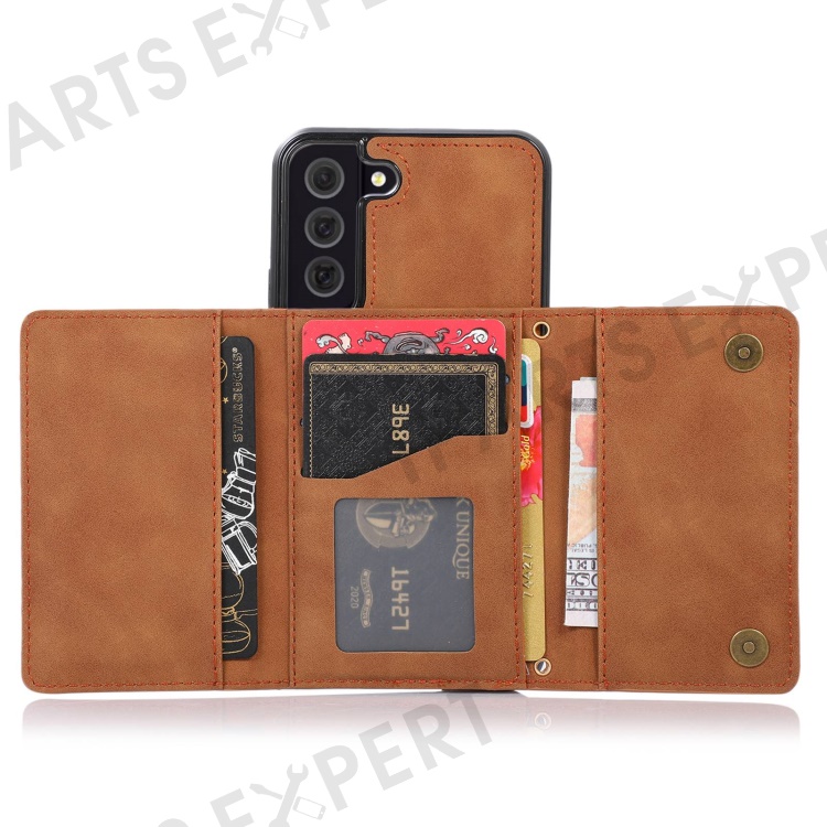 For Samsung Galaxy S22+ 5G Wallet Design Phone Case Wear-resistant Multiple Card Slots Leather Coated TPU Cover - Brown