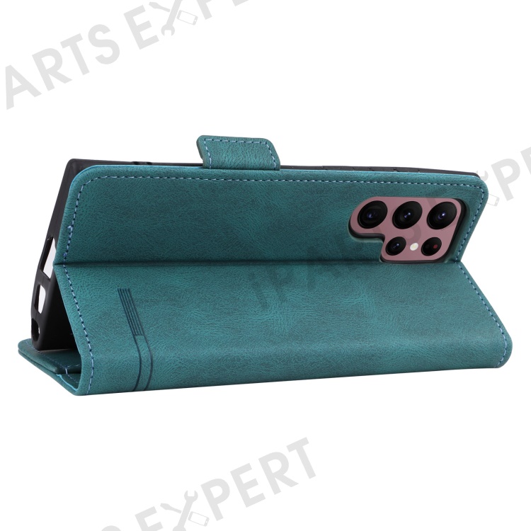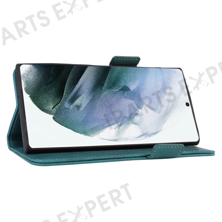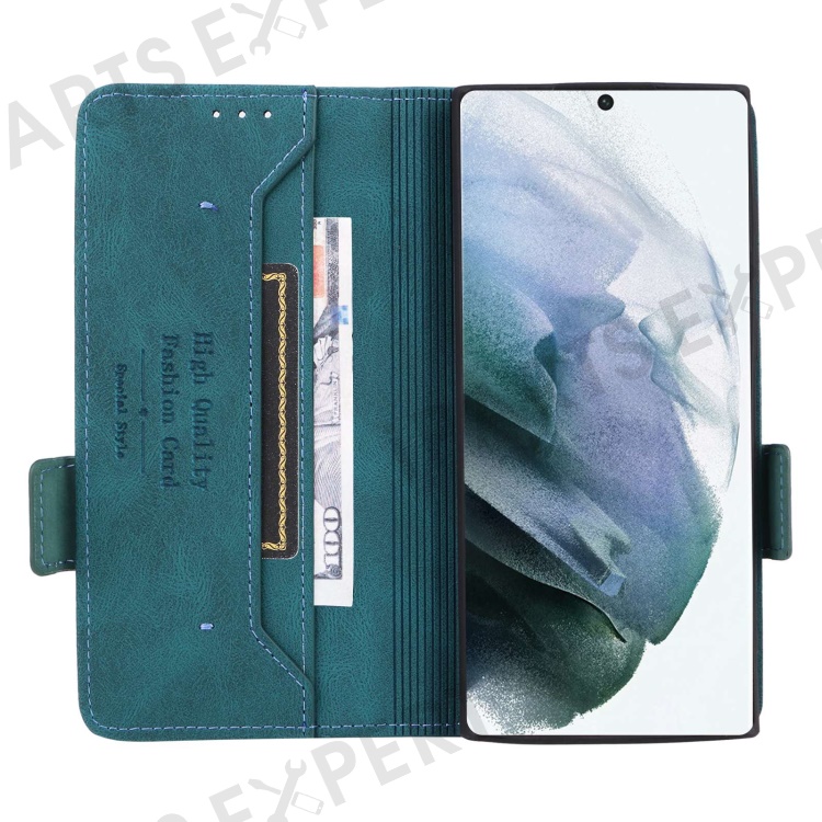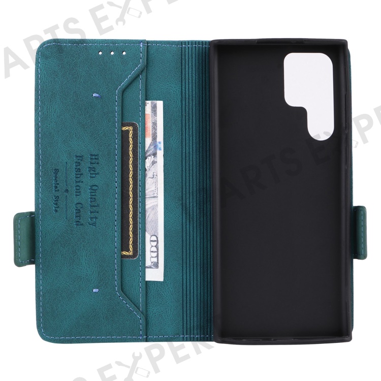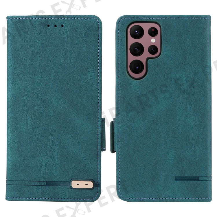 For Samsung Galaxy S22 Ultra 5G Hardware Decor Drop-proof Phone Case PU Leather+TPU Anti-wear Wallet Stand Shell - Blue