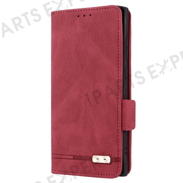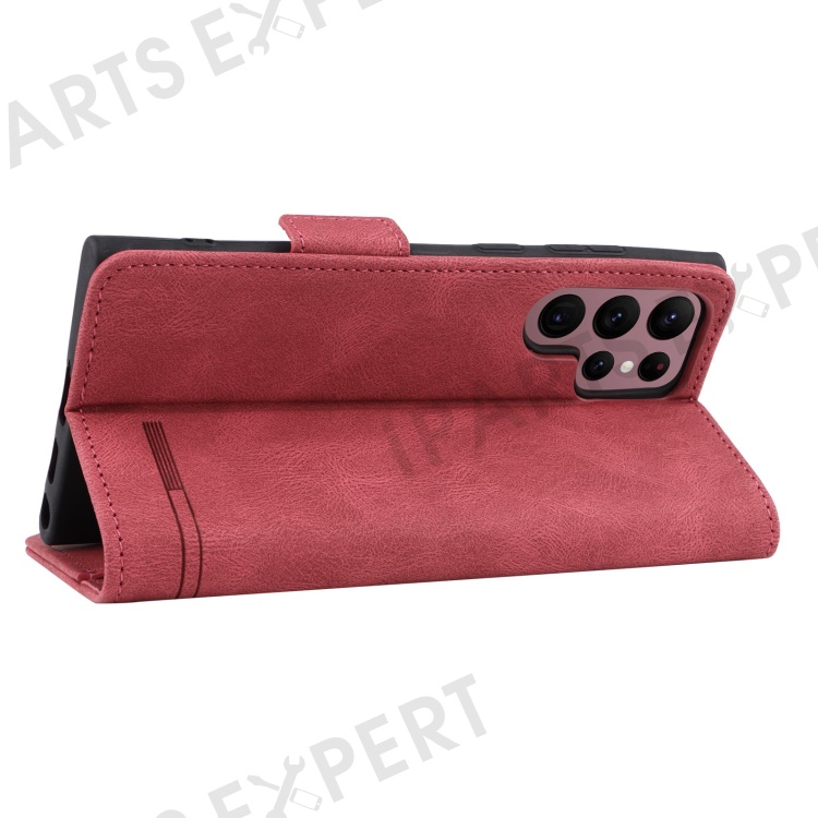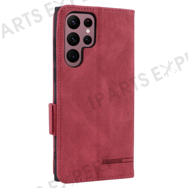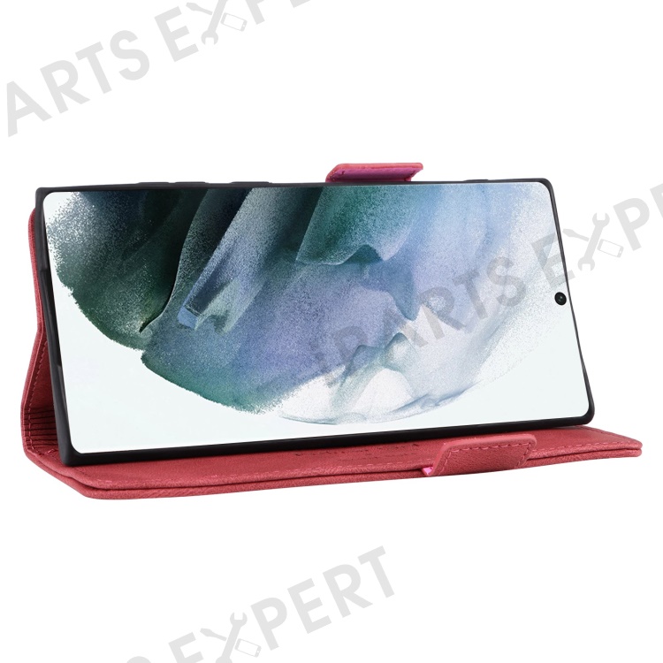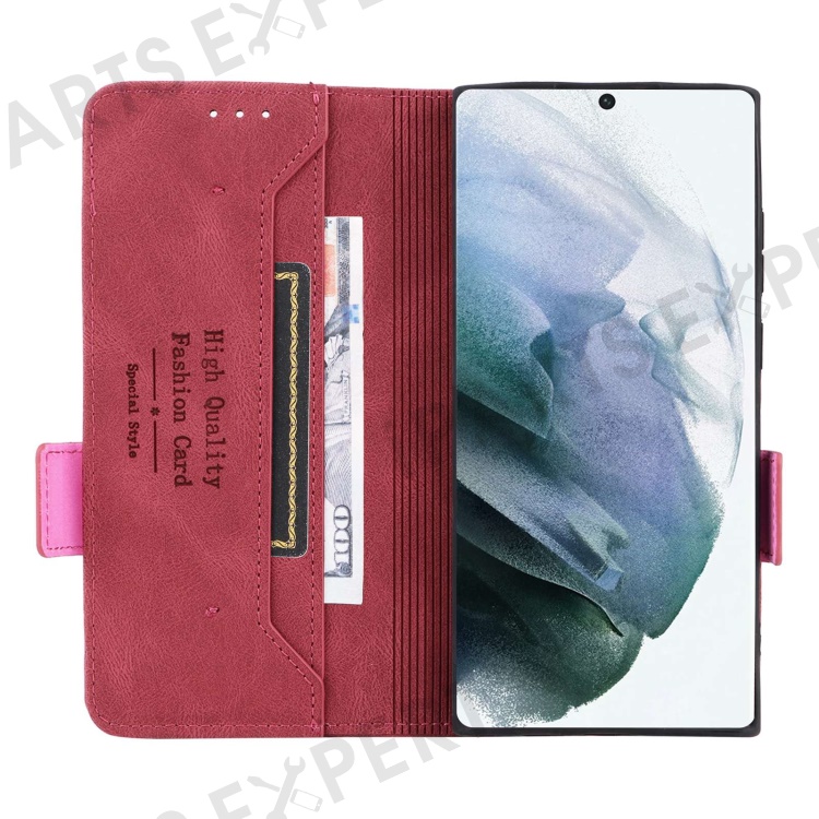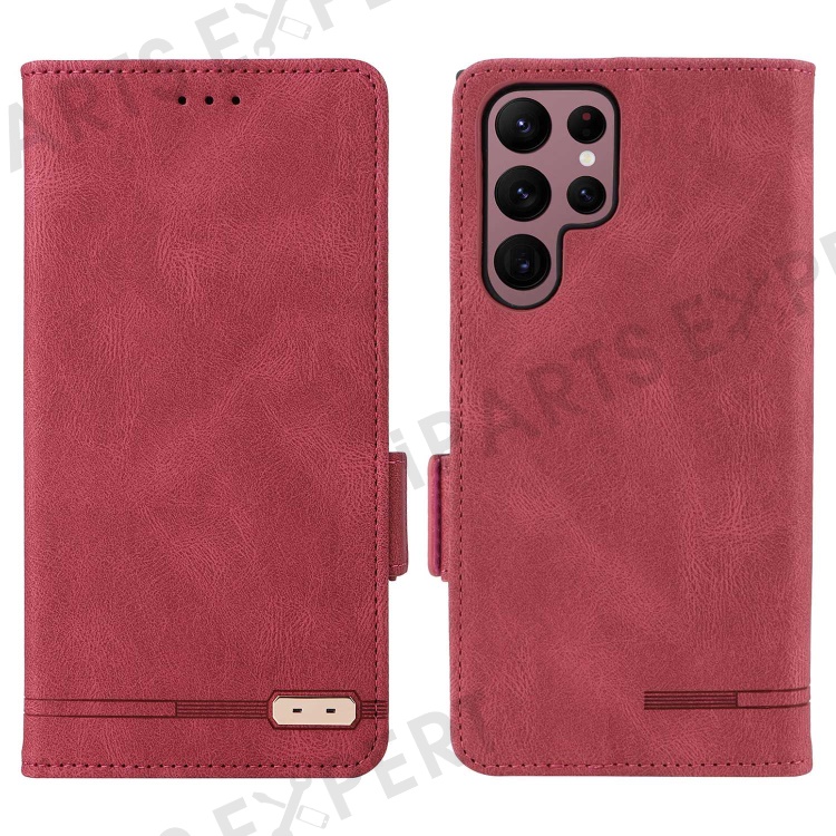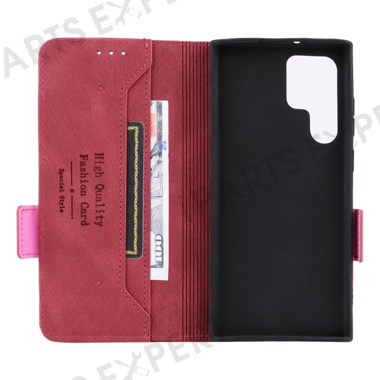 For Samsung Galaxy S22 Ultra 5G Hardware Decor Drop-proof Phone Case PU Leather+TPU Anti-wear Wallet Stand Shell - Rose