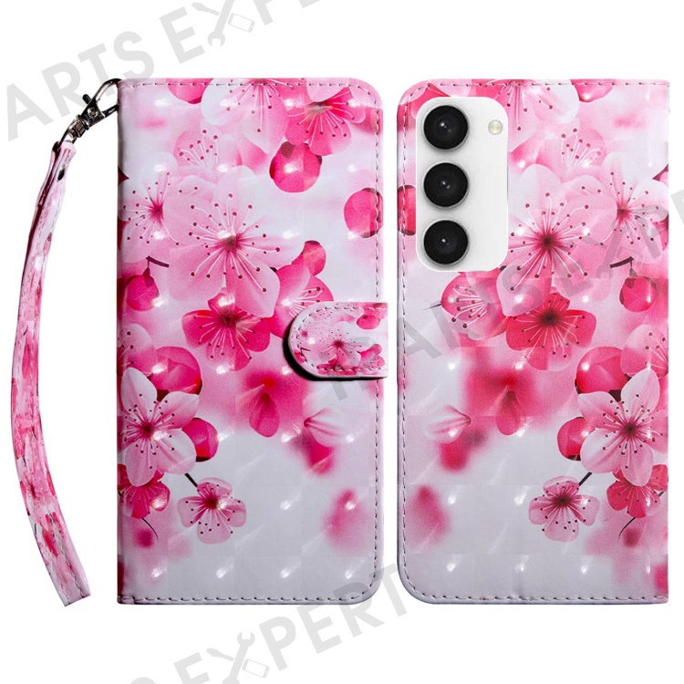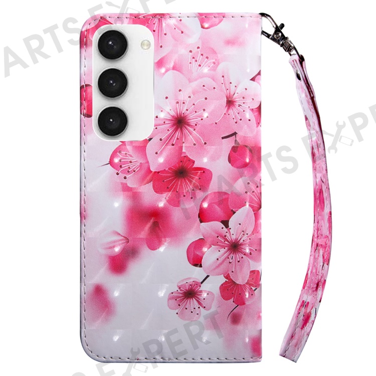For Samsung Galaxy S23 3D Pattern Printing Anti-scratch Stand Case PU Leather Drop-proof Phone Wallet Cover with Strap - Red Flower