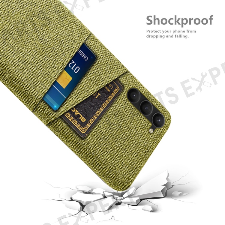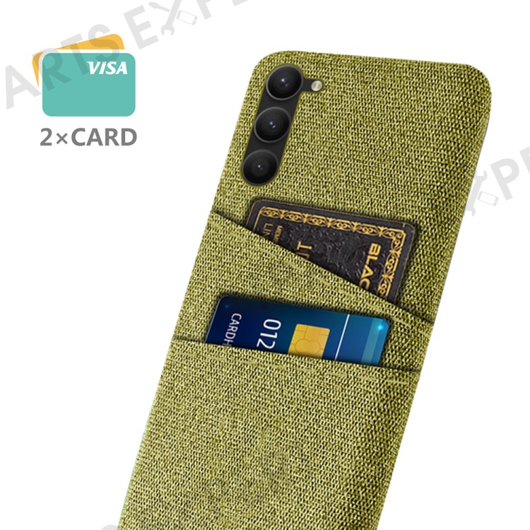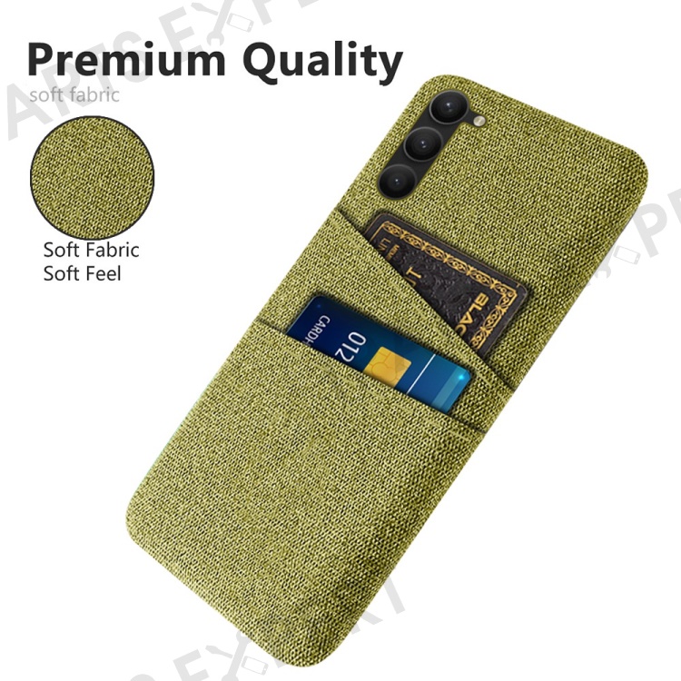 For Samsung Galaxy S23 Cloth Texture Anti-scratch Phone Case Dual Card Slots Hard PC Protective Cell Phone Back Cover - Yellow