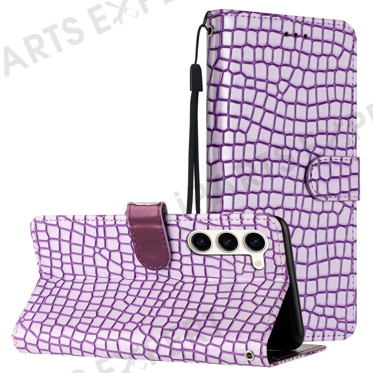 For Samsung Galaxy S23+ Crocodile Texture PU Leather Stand Cover Phone Wallet Case with Hand Strap - Purple