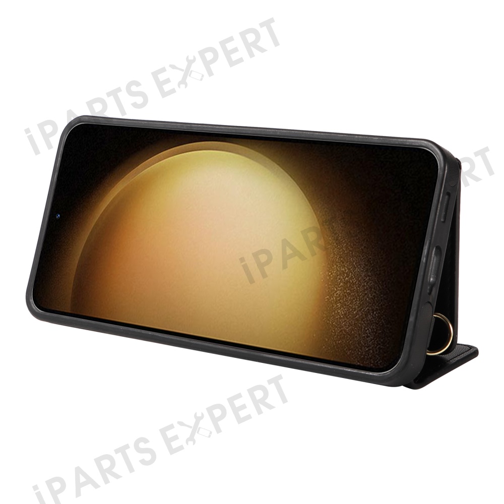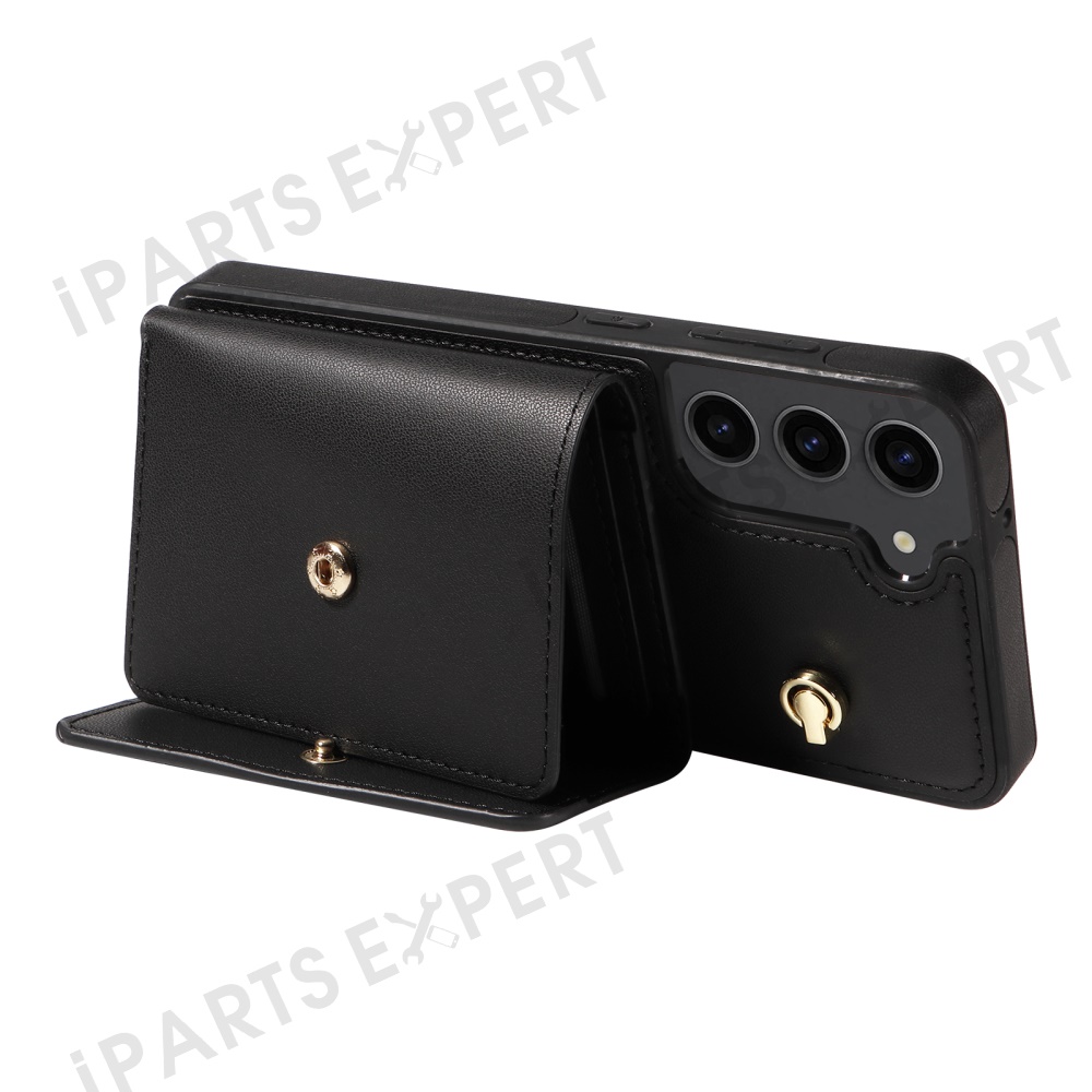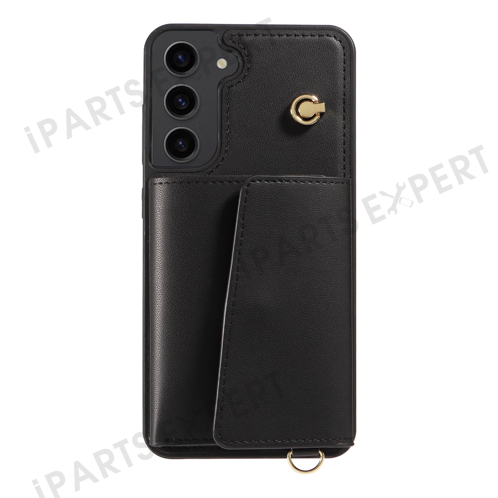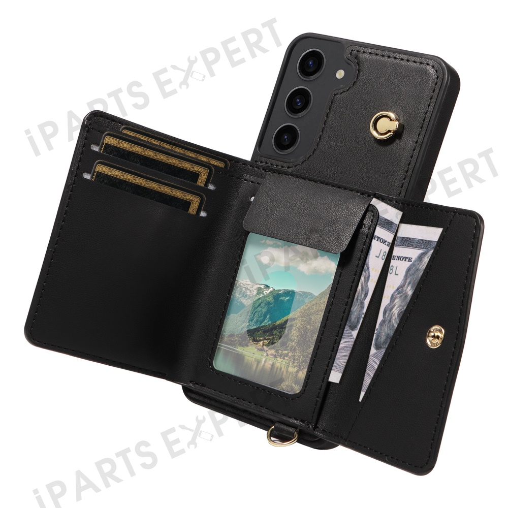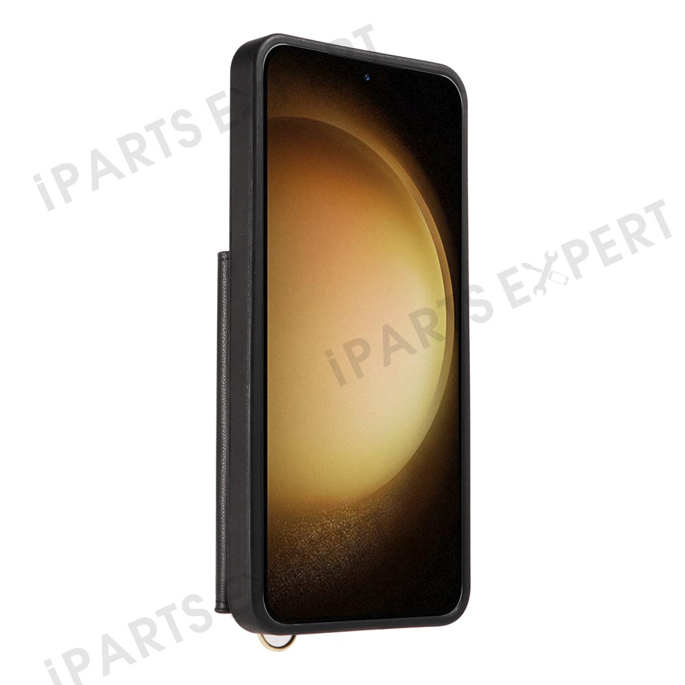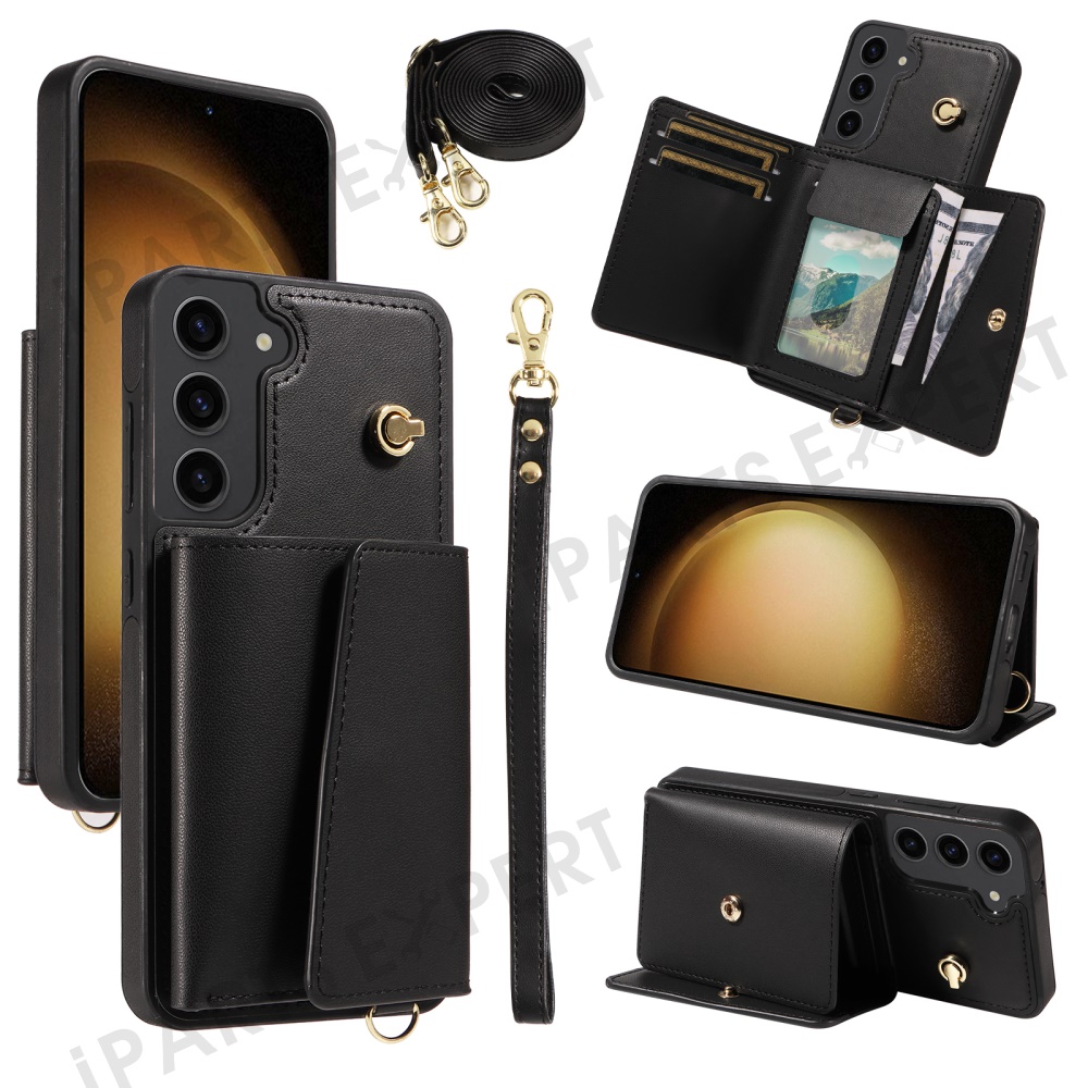 For Samsung Galaxy S23+ Crossbody Phone Case Card Holder Kickstand Leather Coated TPU Mobile Cover - Black