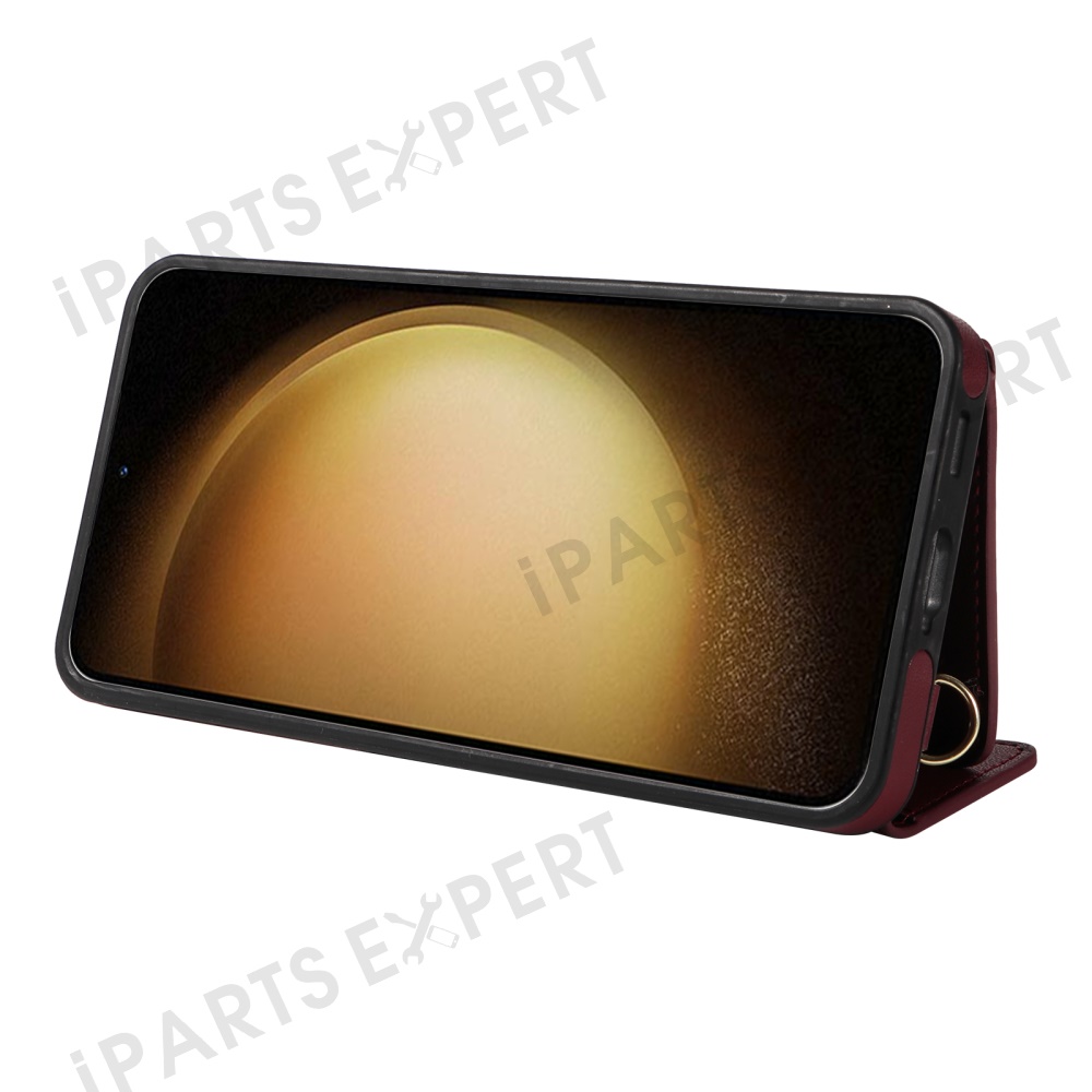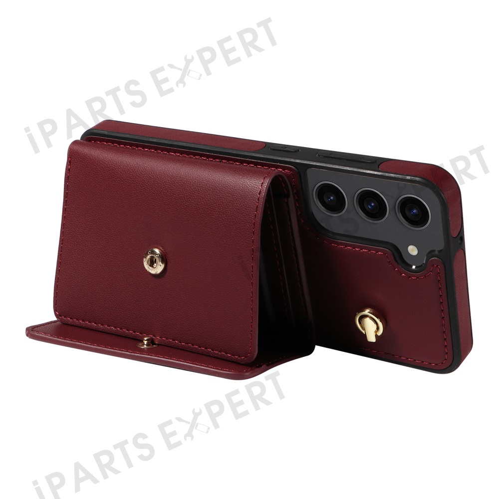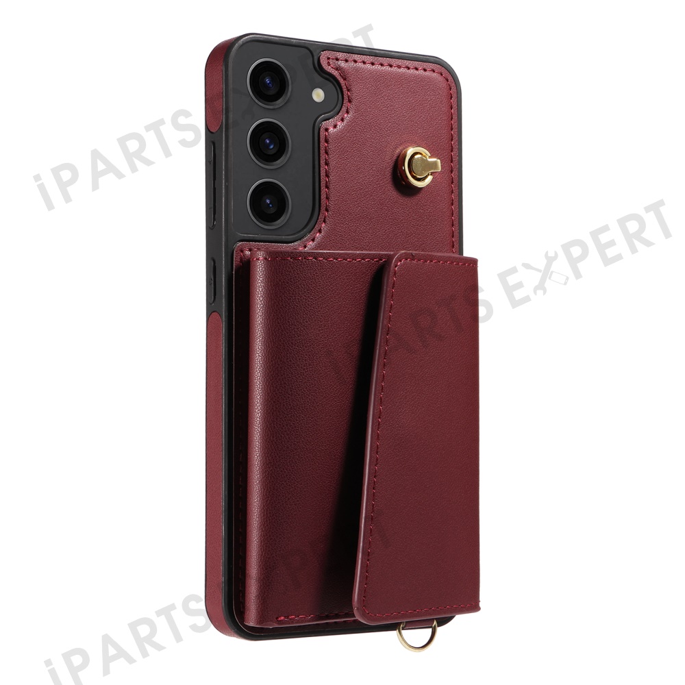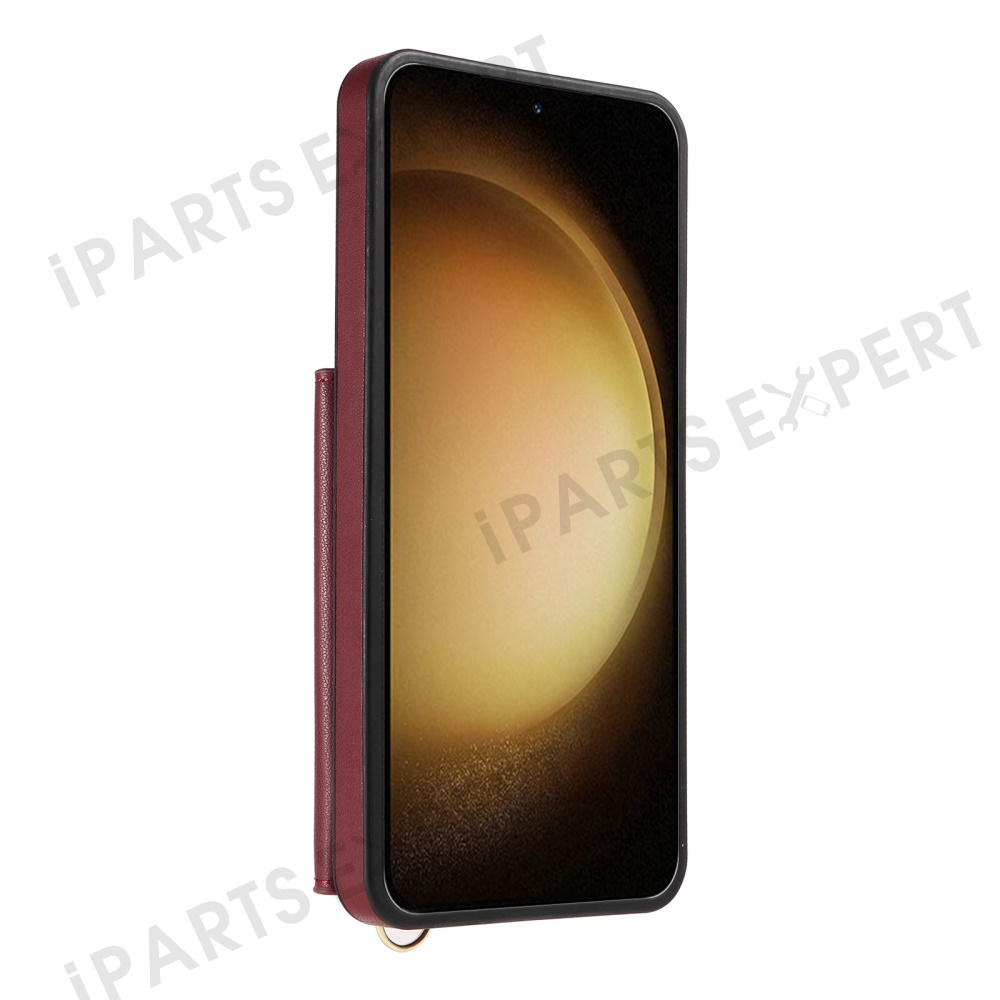 For Samsung Galaxy S23+ Crossbody Phone Case Card Holder Kickstand Leather Coated TPU Mobile Cover - Wine Red