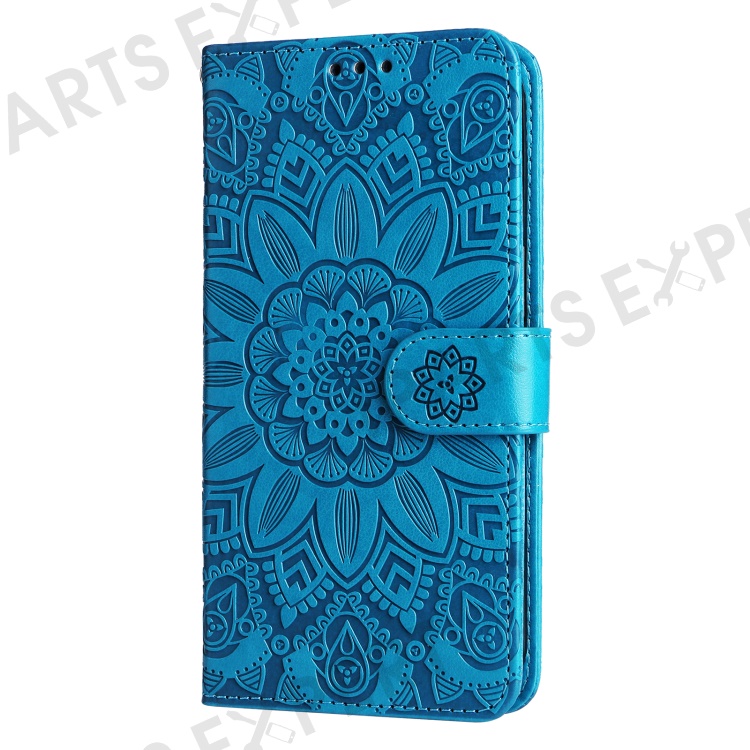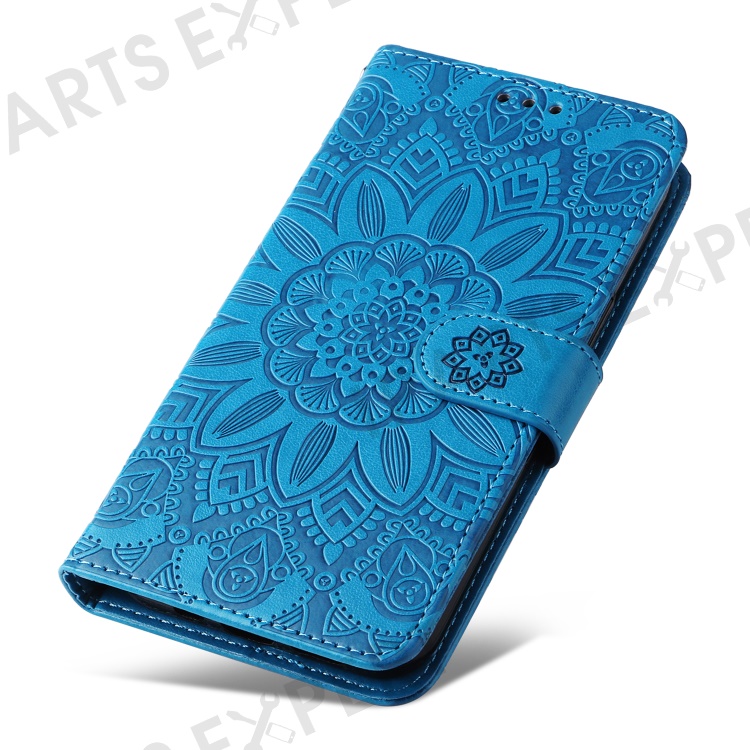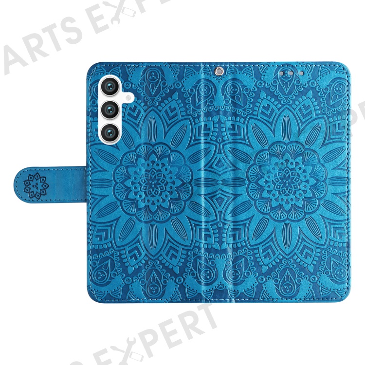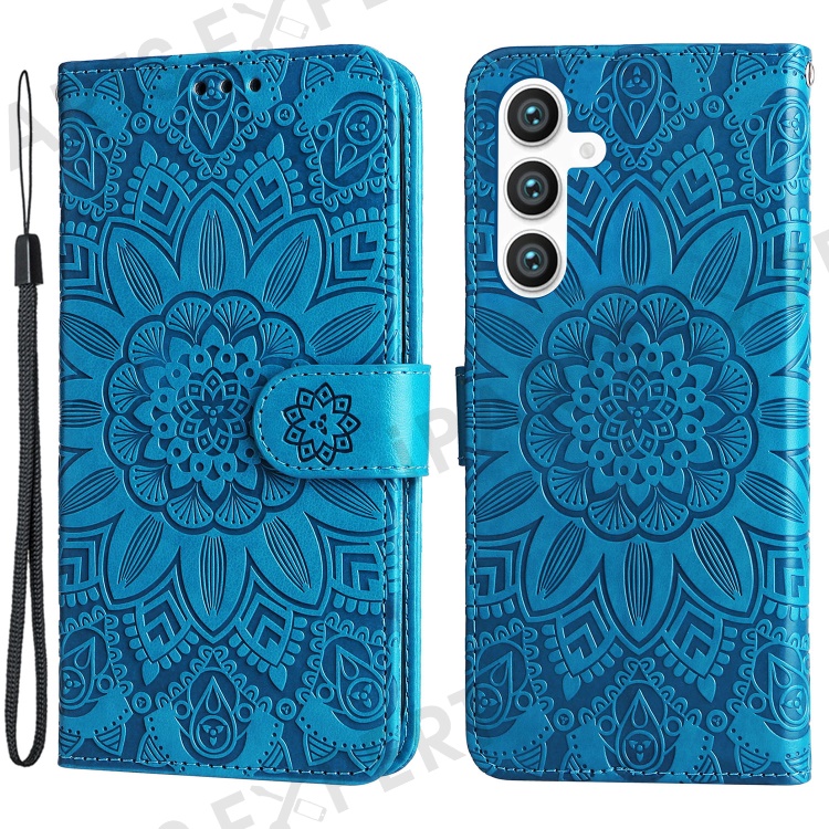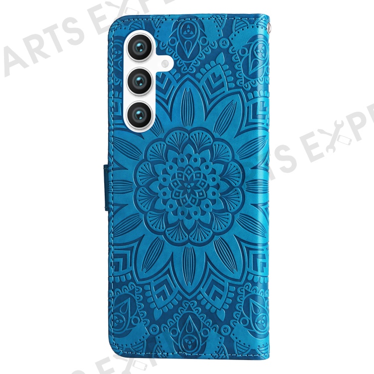 For Samsung Galaxy S23 FE Anti-Scratch Phone Cover PU Leather Shockproof Imprinted Sunflower Wallet Stand Case - Blue