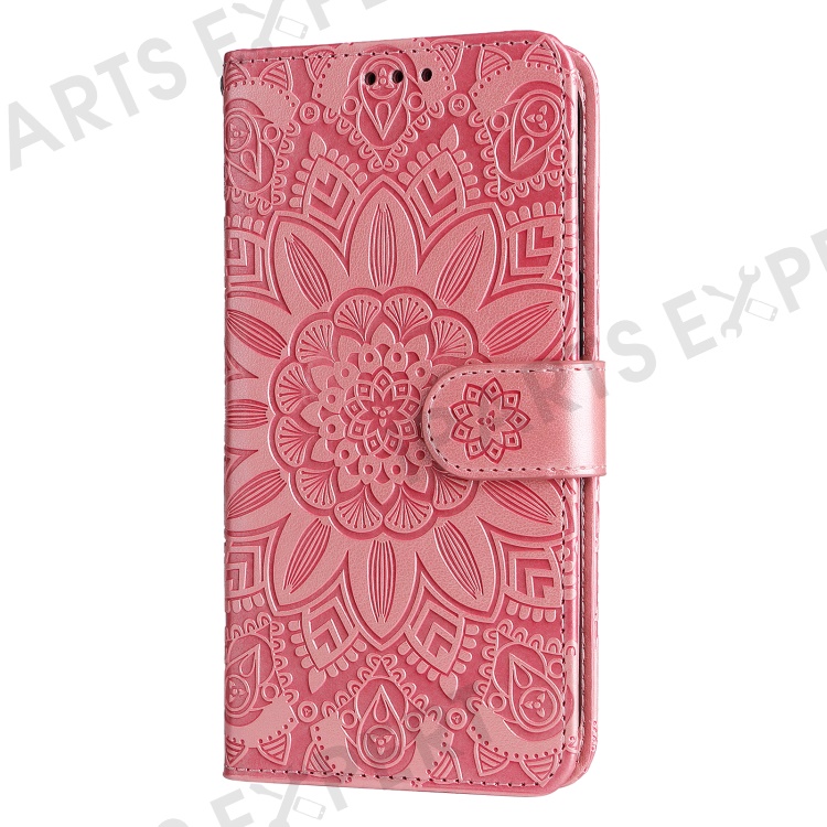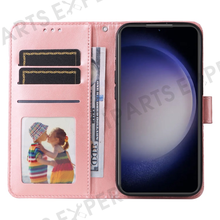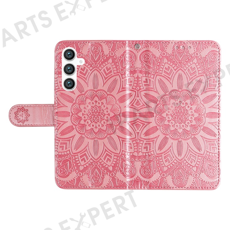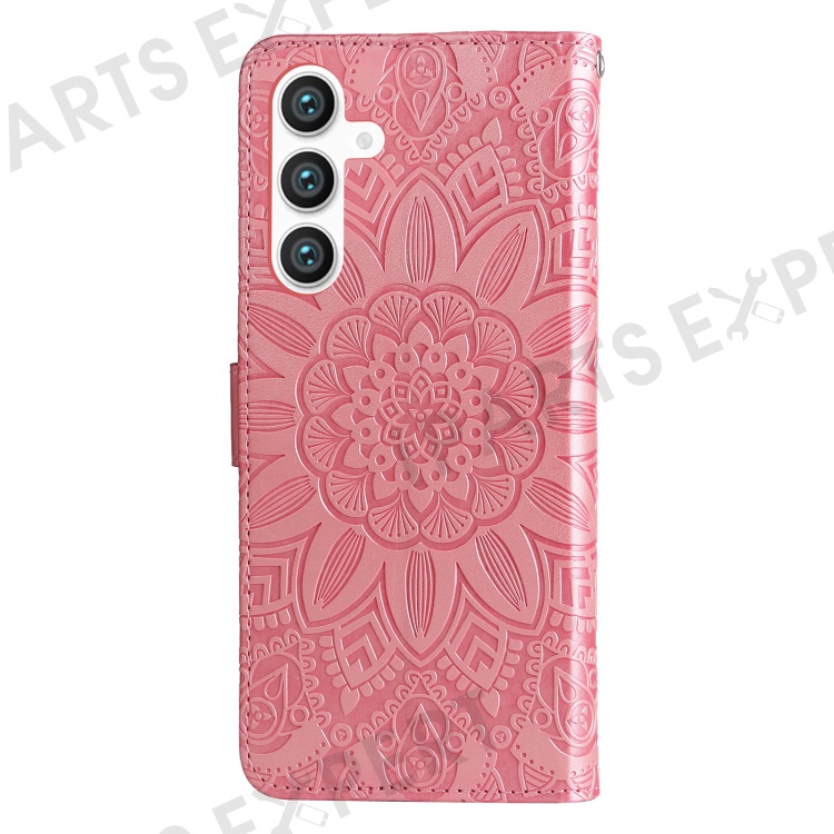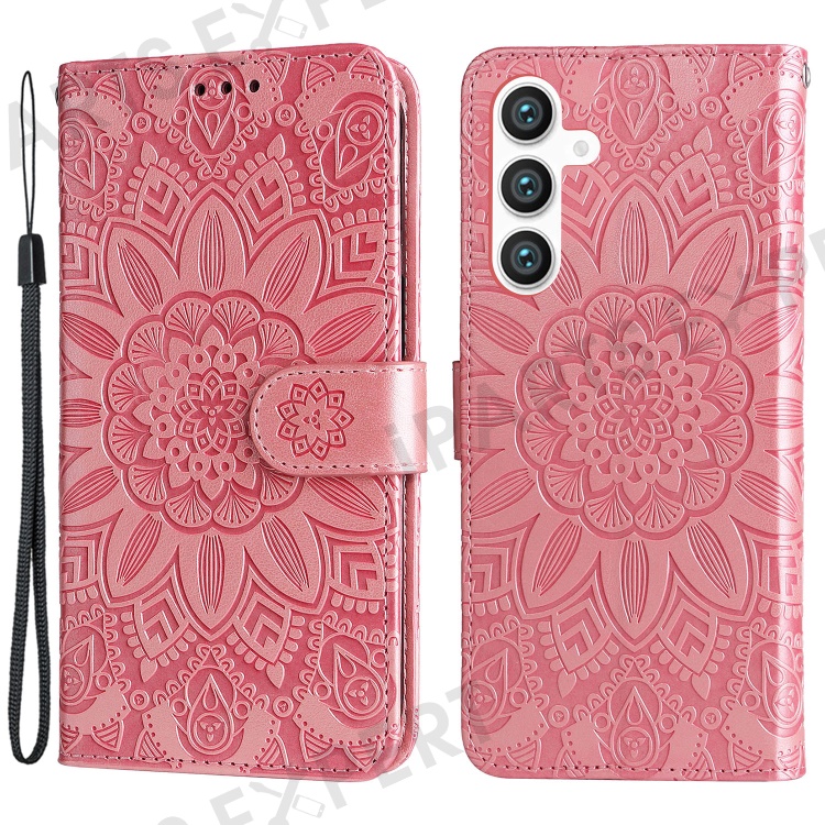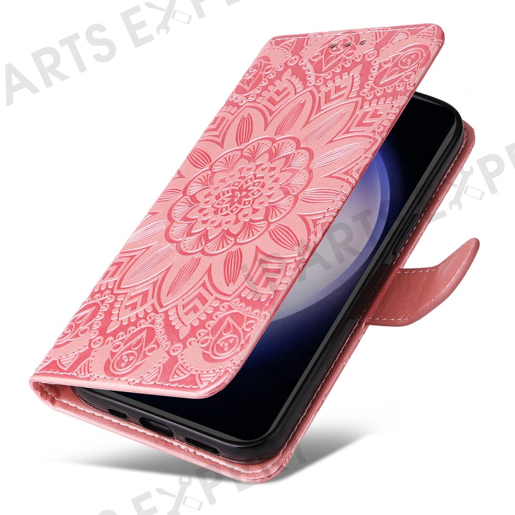 For Samsung Galaxy S23 FE Anti-Scratch Phone Cover PU Leather Shockproof Imprinted Sunflower Wallet Stand Case - Pink