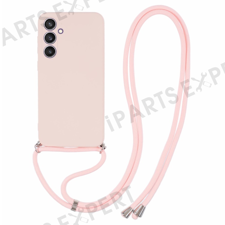For Samsung Galaxy S23 FE Case Fiber Lining TPU Back Cover with Long Lanyard - Pink