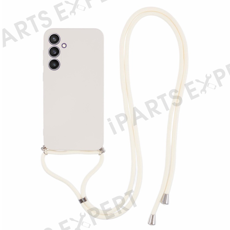 For Samsung Galaxy S23 FE Case Fiber Lining TPU Back Cover with Long Lanyard - White