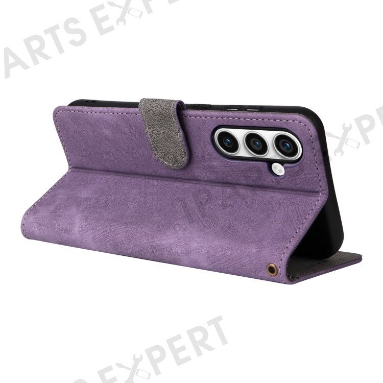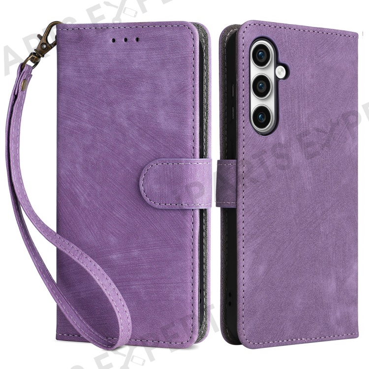 For Samsung Galaxy S23 FE RFID Blocking Wallet Stand PU Leather Case Cell Phone Cover with Strap - Purple
