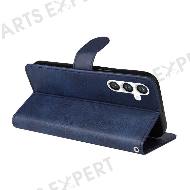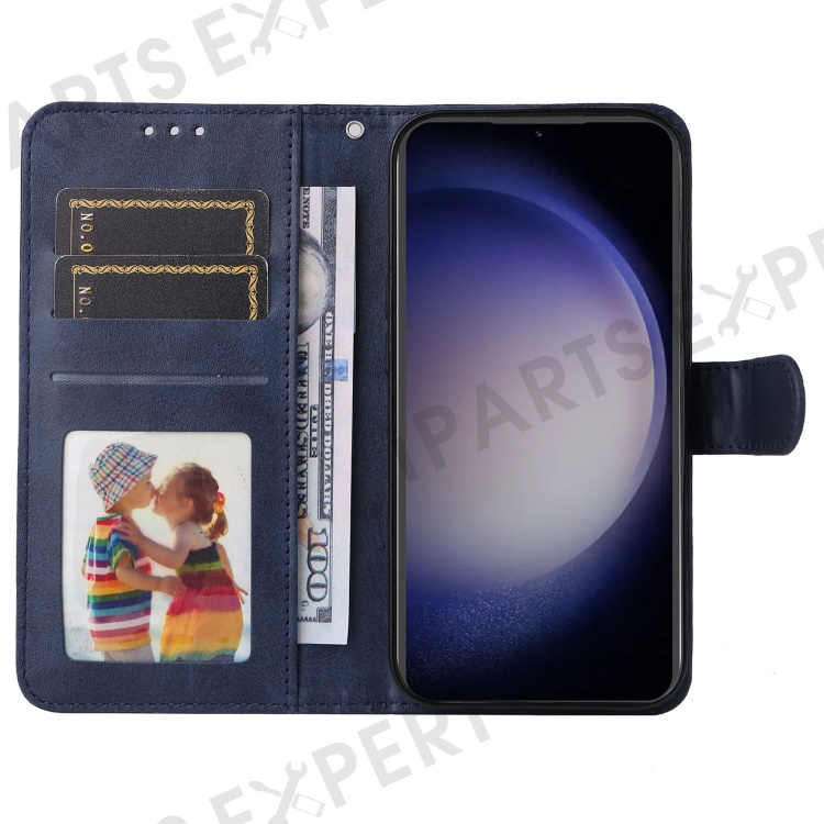 For Samsung Galaxy S23 FE Shockproof Flip Phone Shell PU Leather Wallet Phone Case Stand Calf Texture Cover - Blue