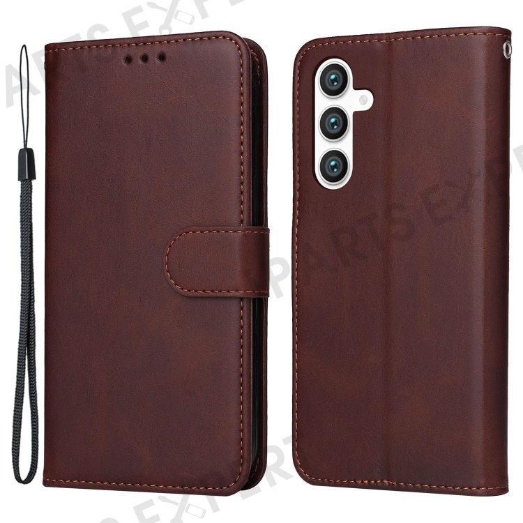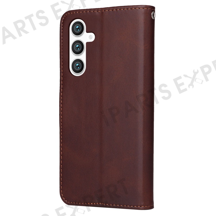 For Samsung Galaxy S23 FE Shockproof Flip Phone Shell PU Leather Wallet Phone Case Stand Calf Texture Cover - Brown
