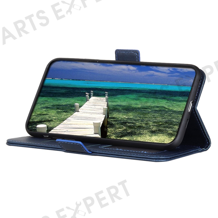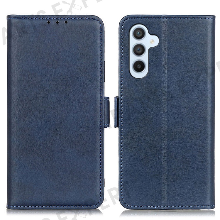For Samsung Galaxy S23 FE Wallet Stand Phone Case PU Leather Cover Cowhide Texture Phone Shell - Blue