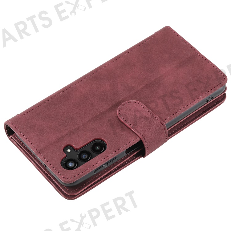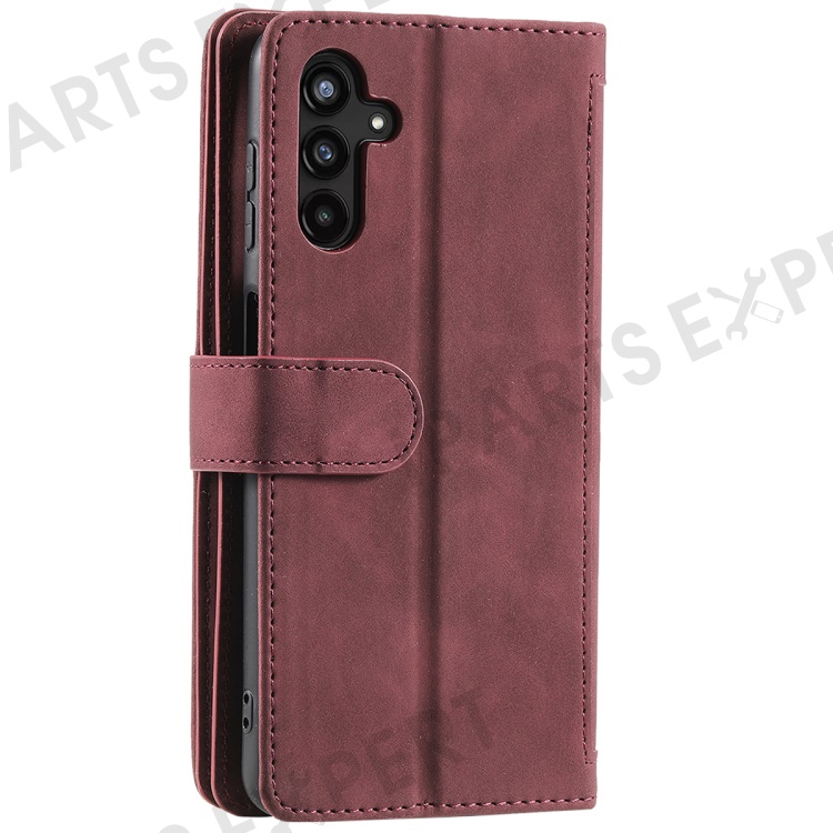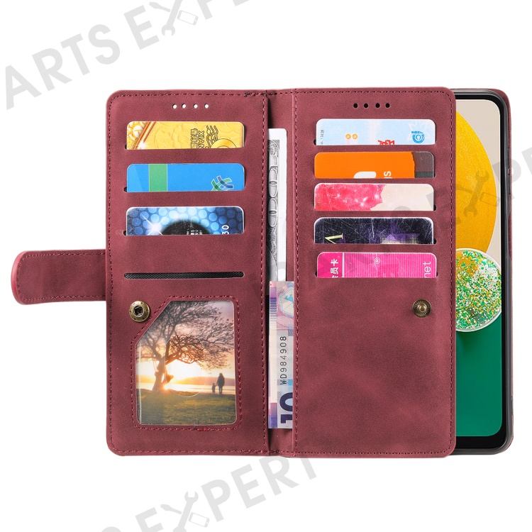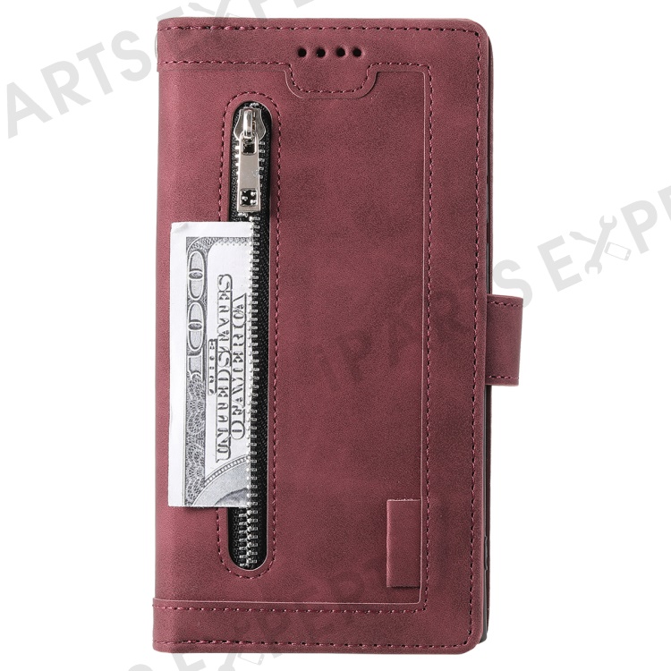 For Samsung Galaxy S23 FE Zipper Pocket PU Leather Phone Case 9 Card Slots Protective Cover - Wine Red