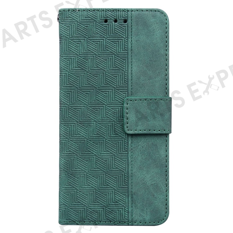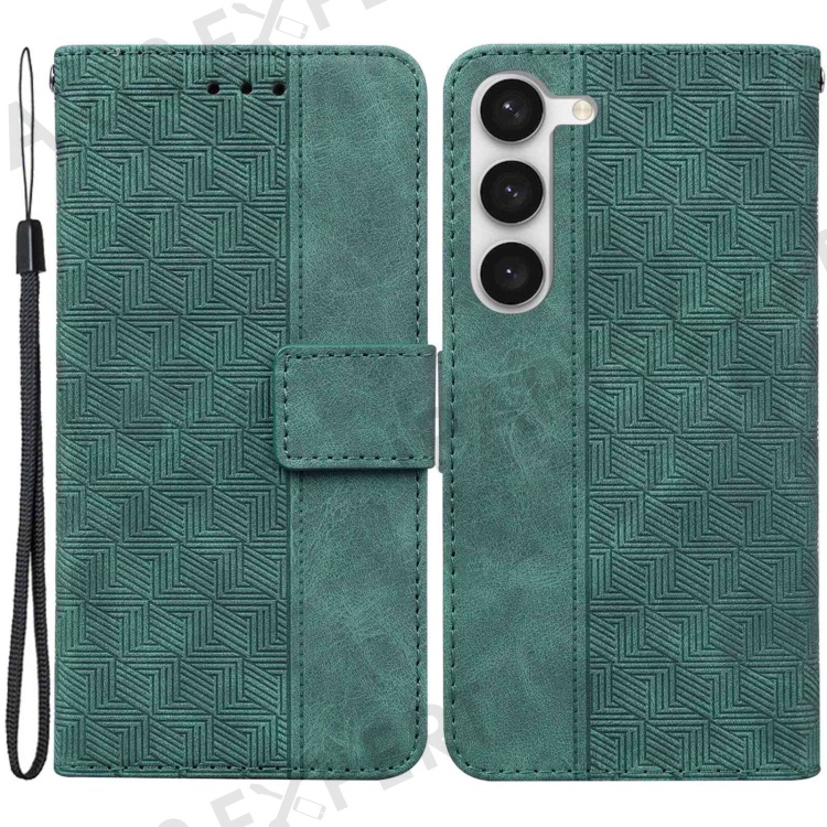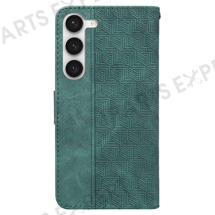 For Samsung Galaxy S23 Geometry Pattern Imprinted Phone Cover Wallet Stand PU Leather Magnetic Clasp Case with Strap - Green
