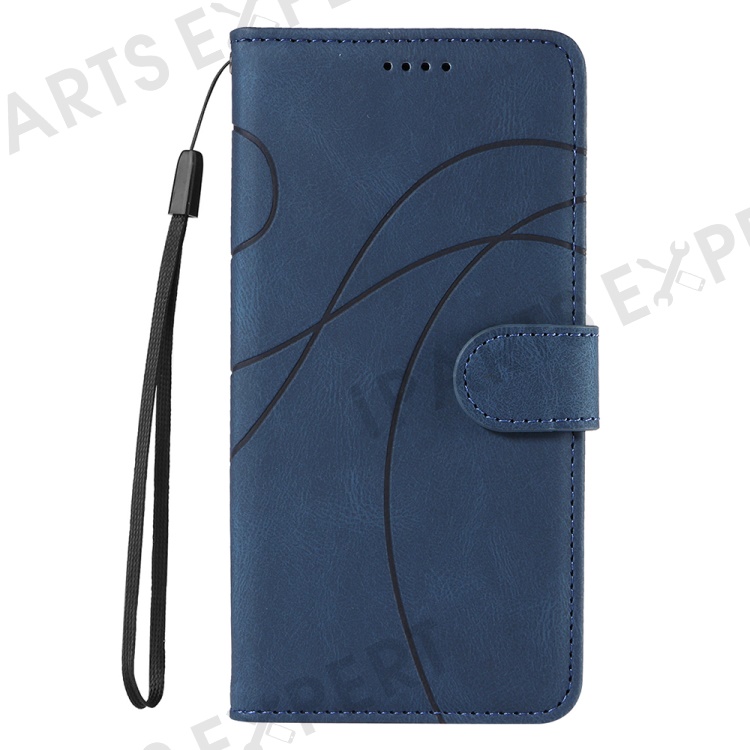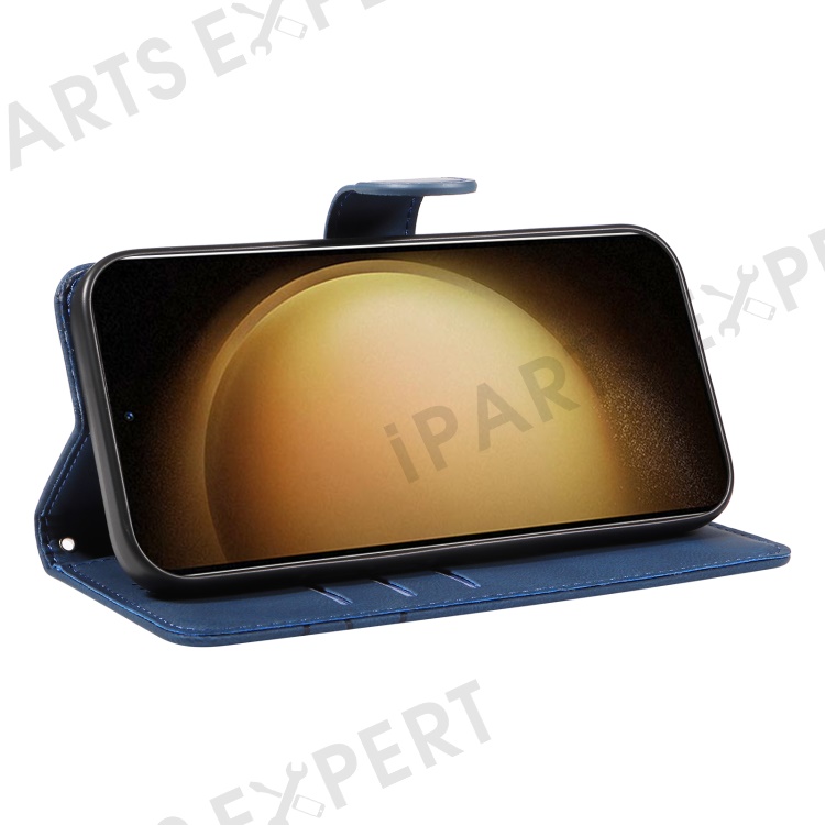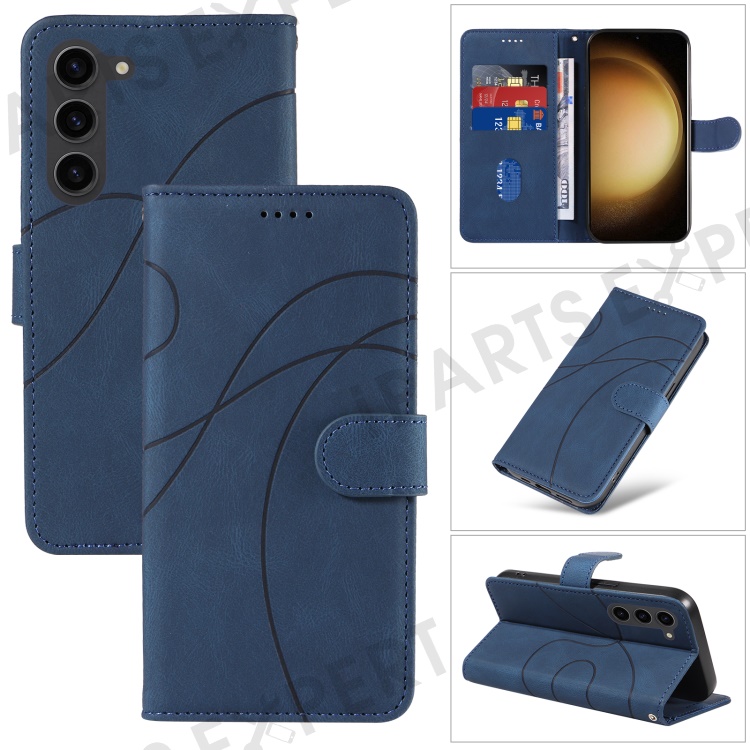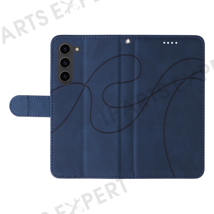 For Samsung Galaxy S23 Phone Wallet Case PU Leather Imprinted Line Stand Smartphone Cover - Blue
