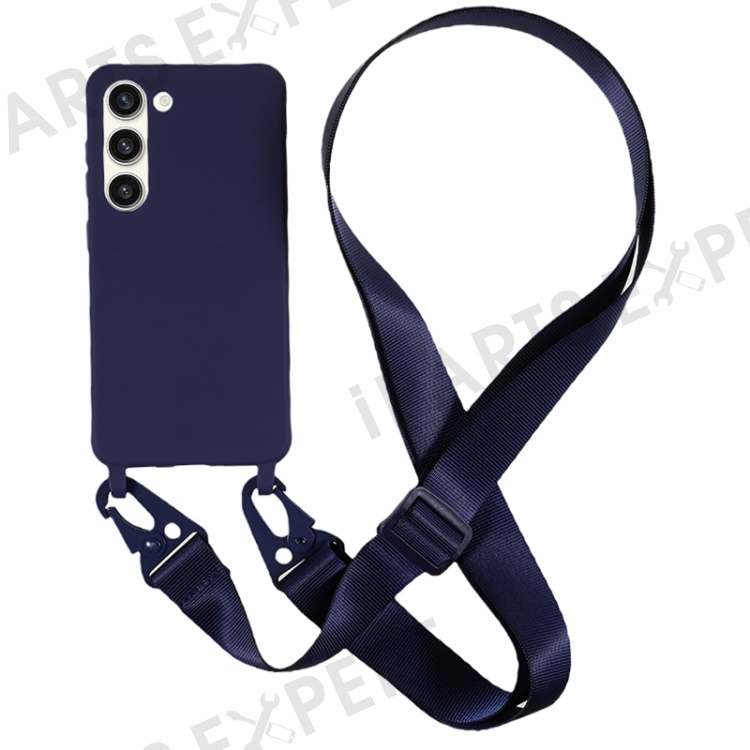 For Samsung Galaxy S23+ Soft TPU Phone Case Matte Finish Smartphone Cover with Wide Lanyard - Dark Blue