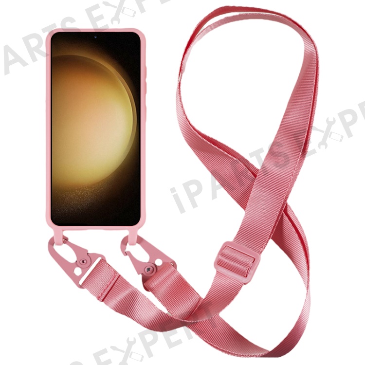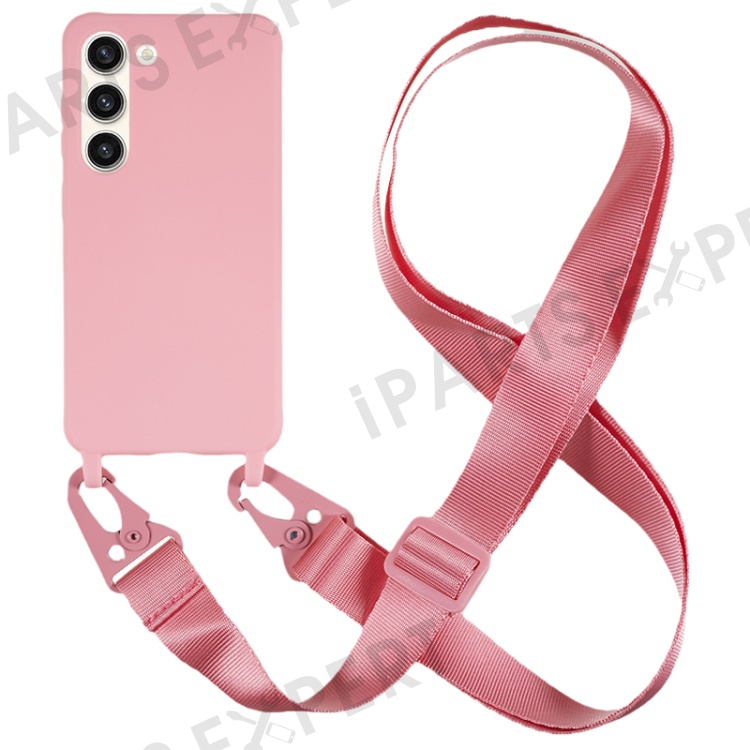 For Samsung Galaxy S23+ Soft TPU Phone Case Matte Finish Smartphone Cover with Wide Lanyard - Pink