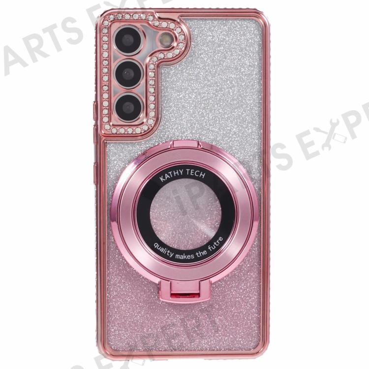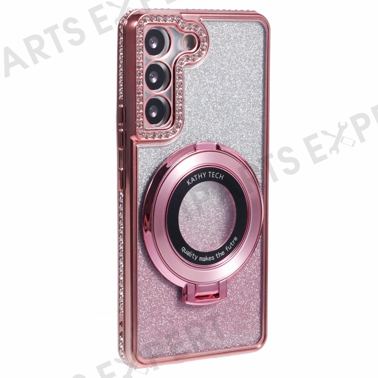 For Samsung Galaxy S23+ TPU Case Gradient Rhinestone Ornament Cover with PC Ring kickstand - Rose Gold