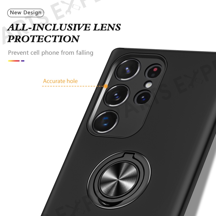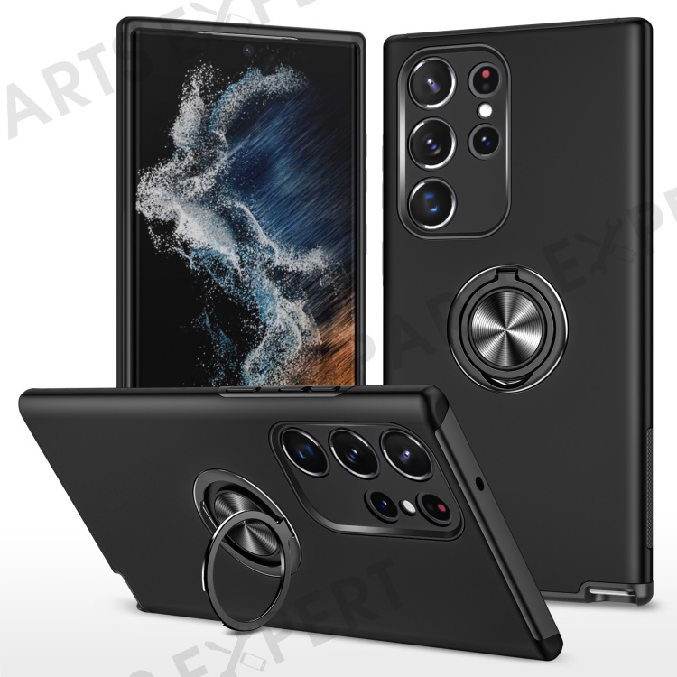 For Samsung Galaxy S23 Ultra Rotation Ring Kickstand Anti-fall Case Hard PC+Soft TPU Dual Layer Protection Phone Cover - Black