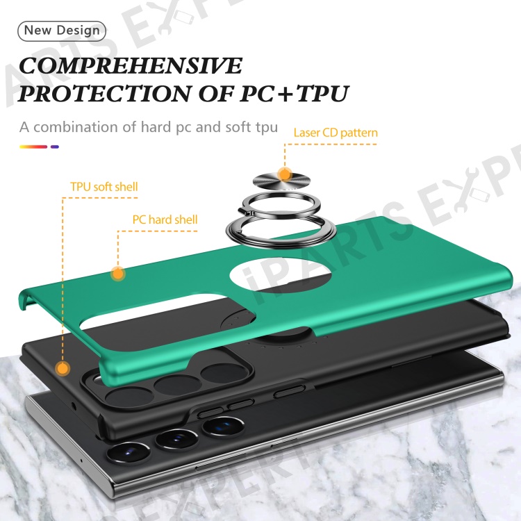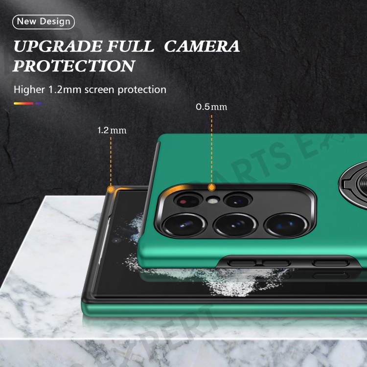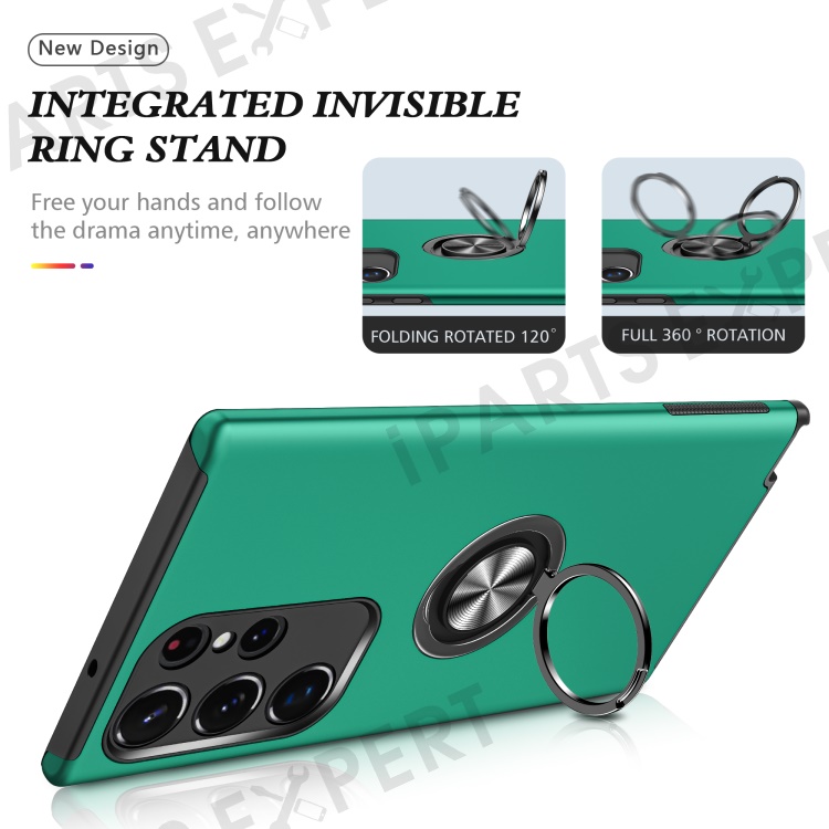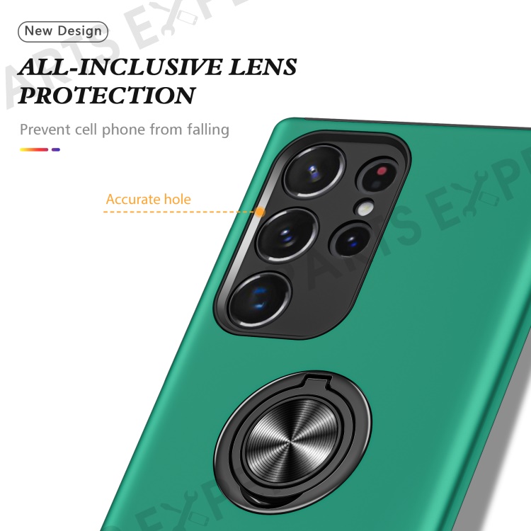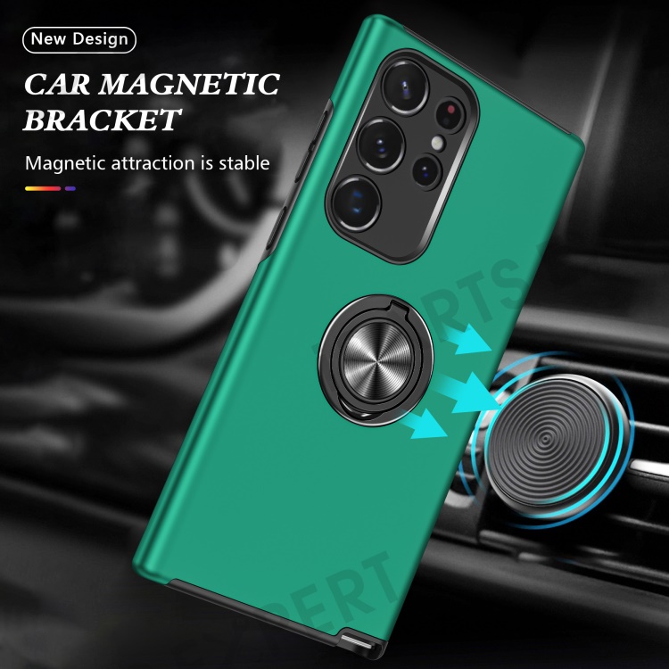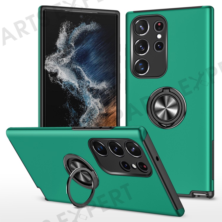 For Samsung Galaxy S23 Ultra Rotation Ring Kickstand Anti-fall Case Hard PC+Soft TPU Dual Layer Protection Phone Cover - Blackish Green