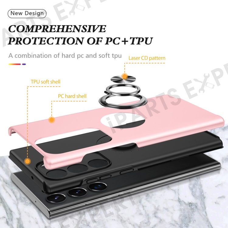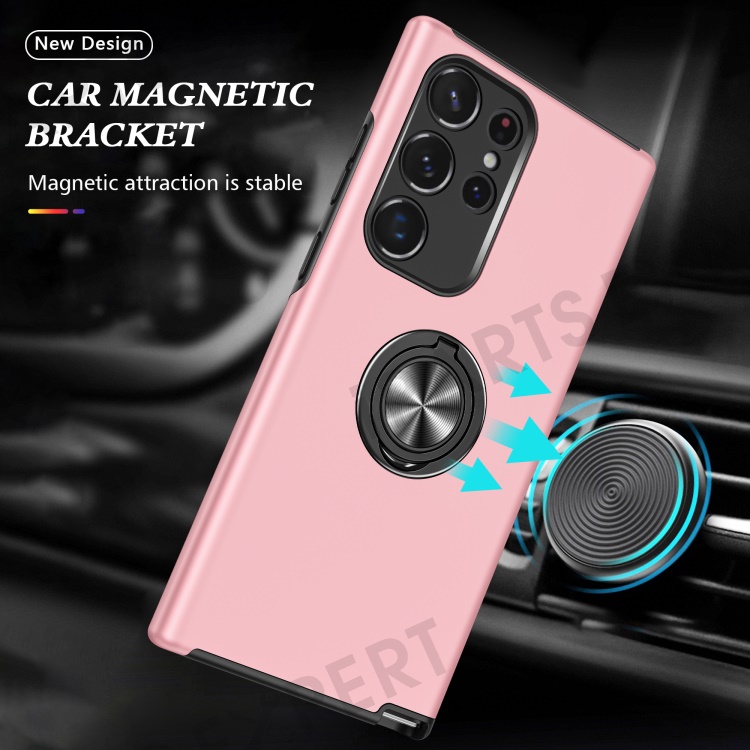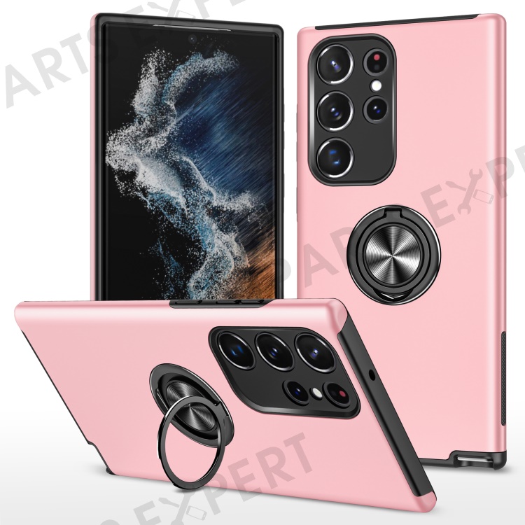 For Samsung Galaxy S23 Ultra Rotation Ring Kickstand Anti-fall Case Hard PC+Soft TPU Dual Layer Protection Phone Cover - Rose Gold