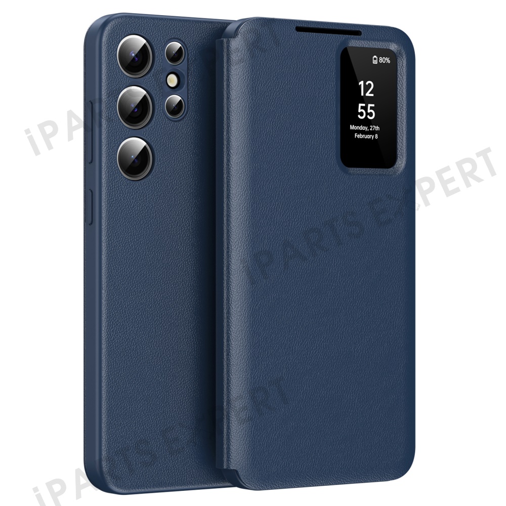 For Samsung Galaxy S23 Ultra Case Leather Phone Cover with View Window Card Slot - Sapphire
