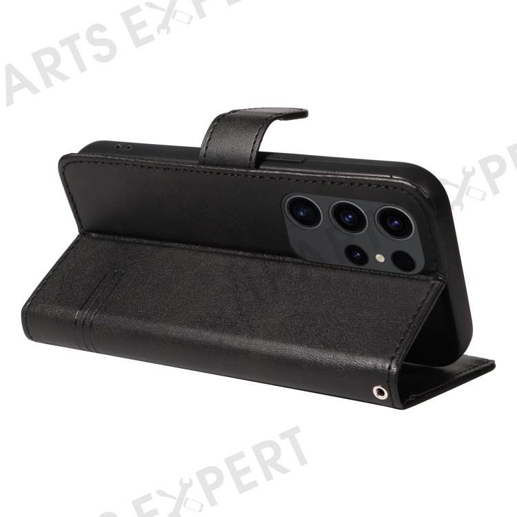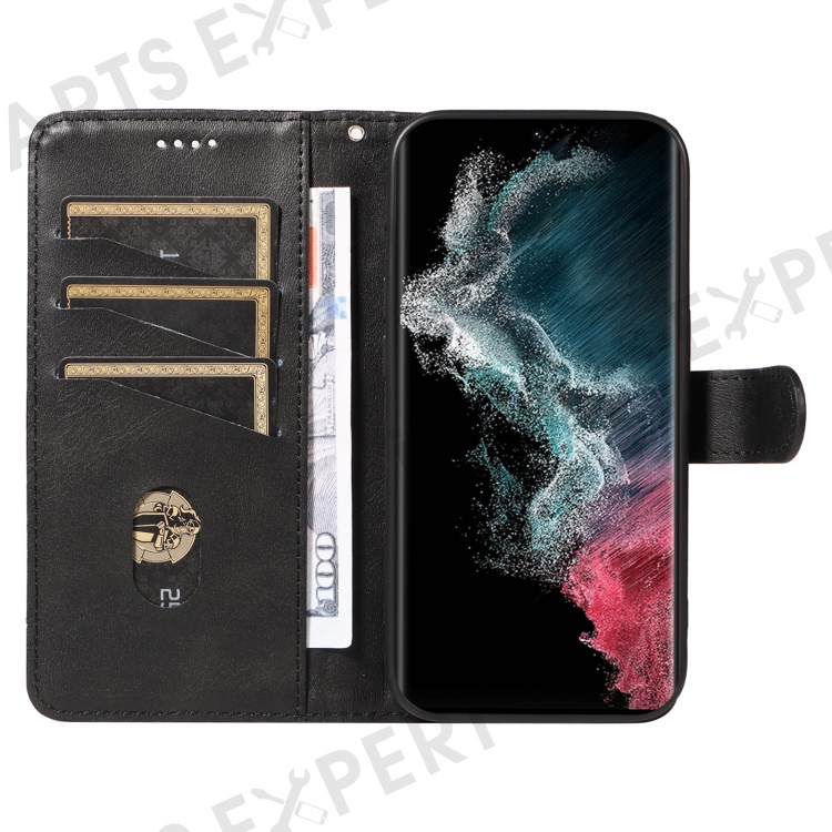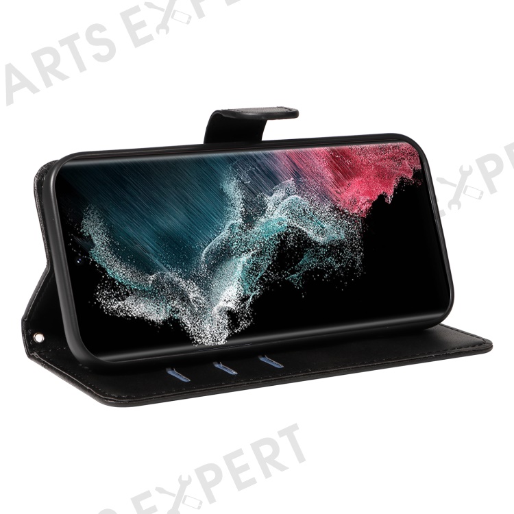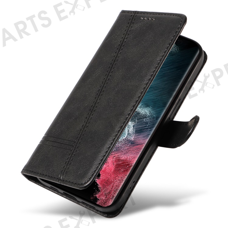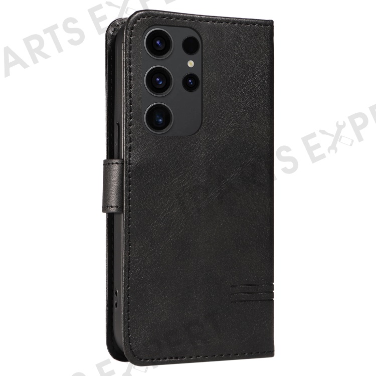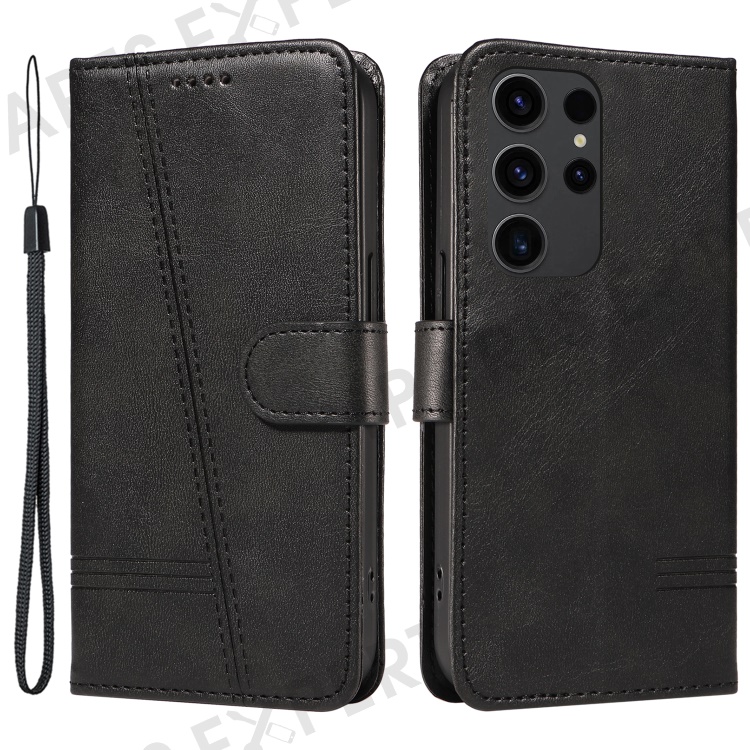 For Samsung Galaxy S23 Ultra Case Leather+TPU Wallet Phone Cover T-Shaped Lines - Black