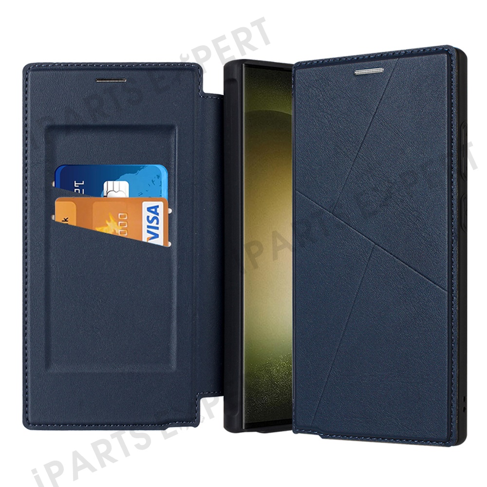 For Samsung Galaxy S23 Ultra Case Magnetic Closure Card Slot Leather Flip Phone Cover - Midnight Blue