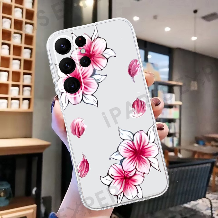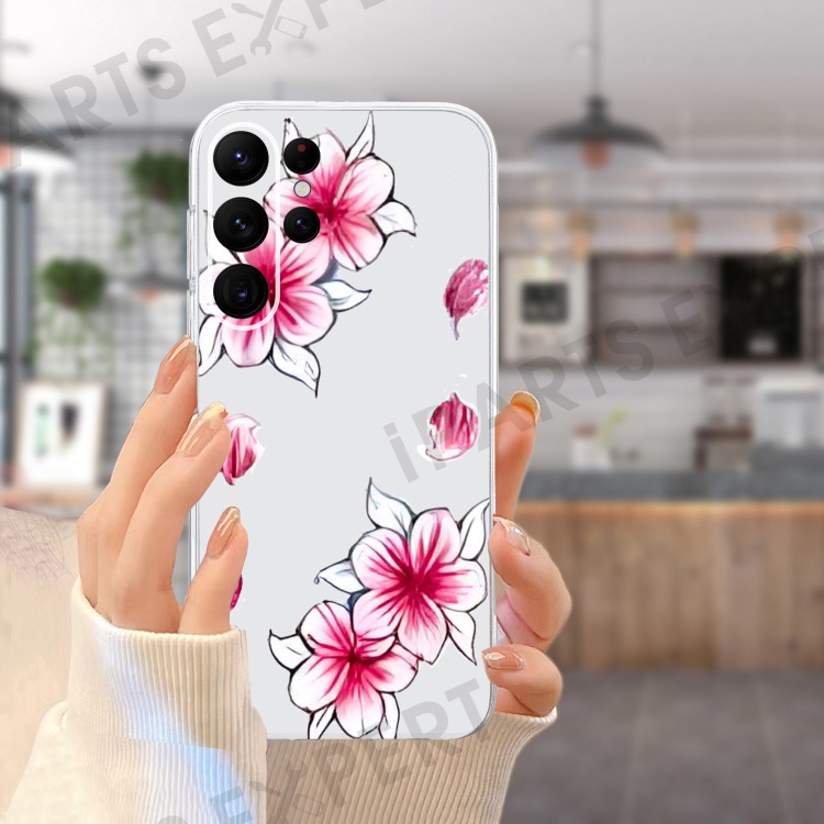 For Samsung Galaxy S23 Ultra Case Pattern Print TPU Phone Cover Precise Lens Protection - Cherry Blossom