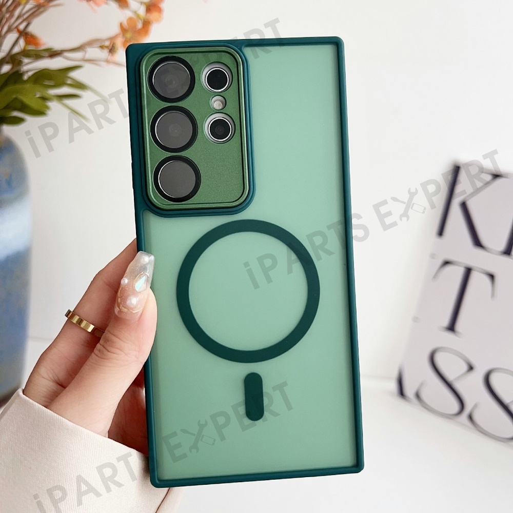 For Samsung Galaxy S23 Ultra Magnetic Case with Lens Film Skin Touch TPU + PC Phone Back Cover - Midnight Green