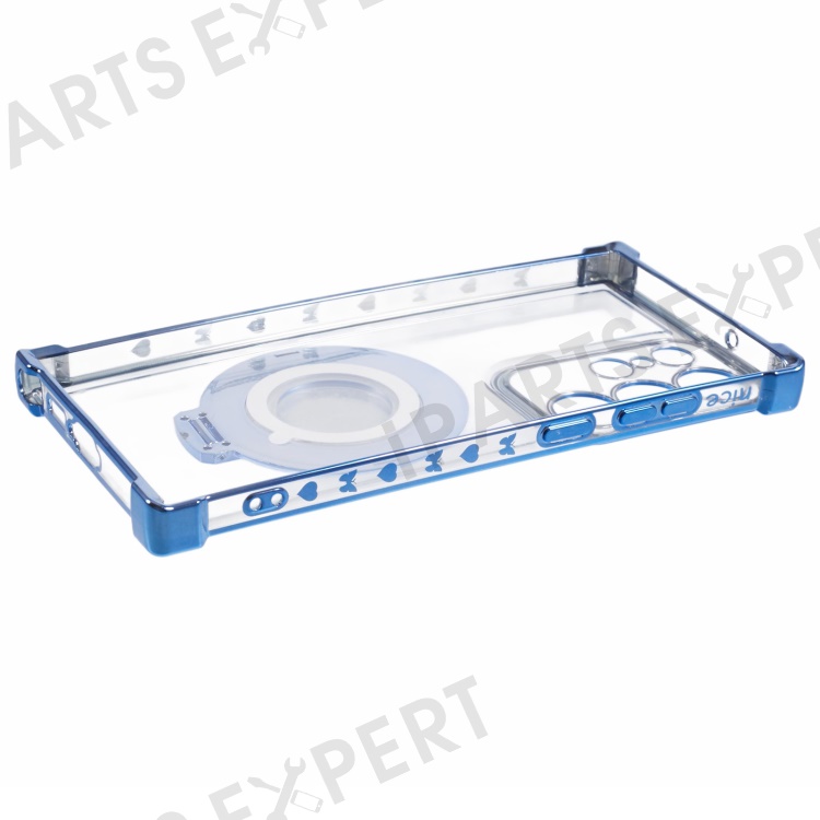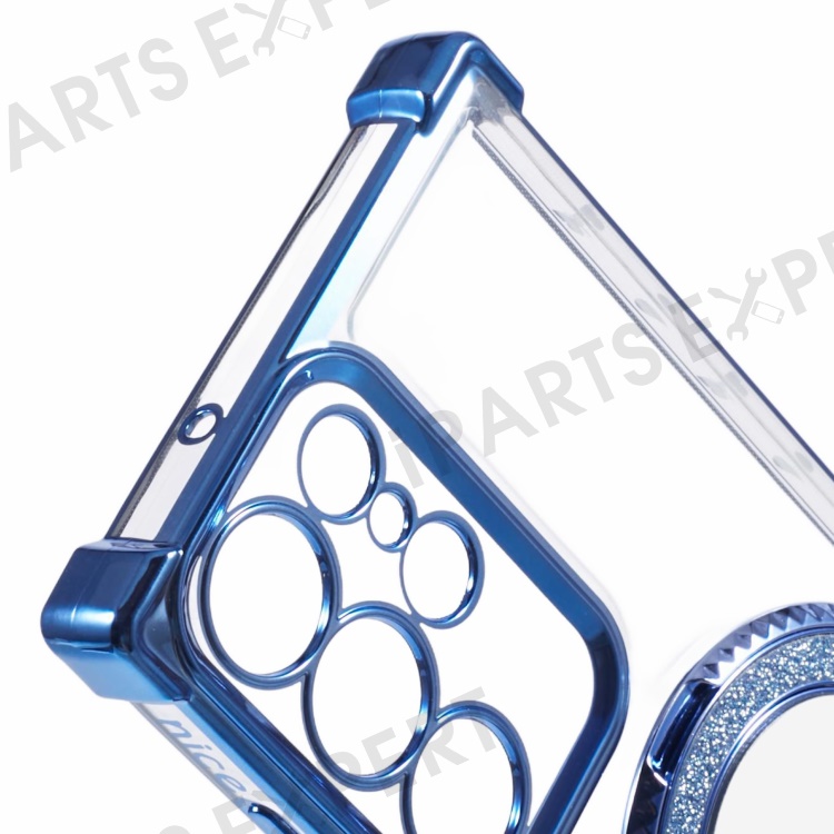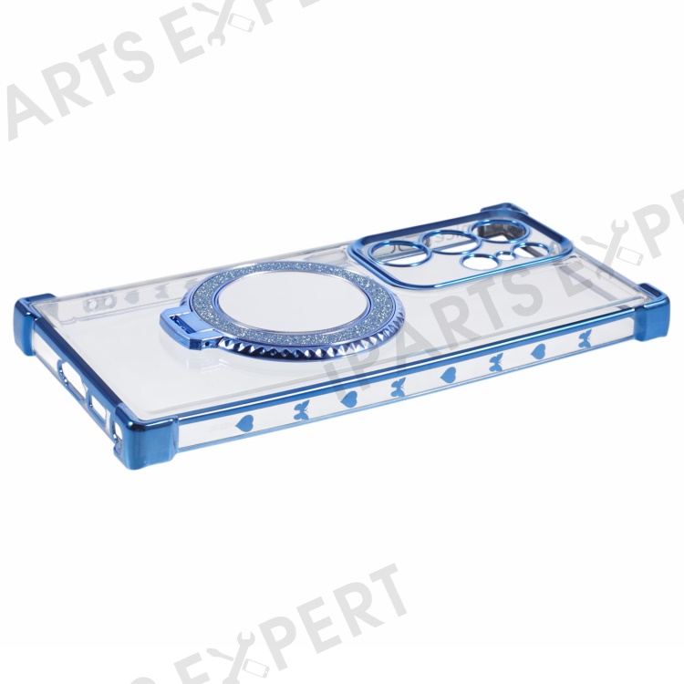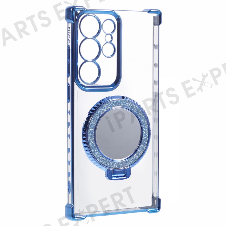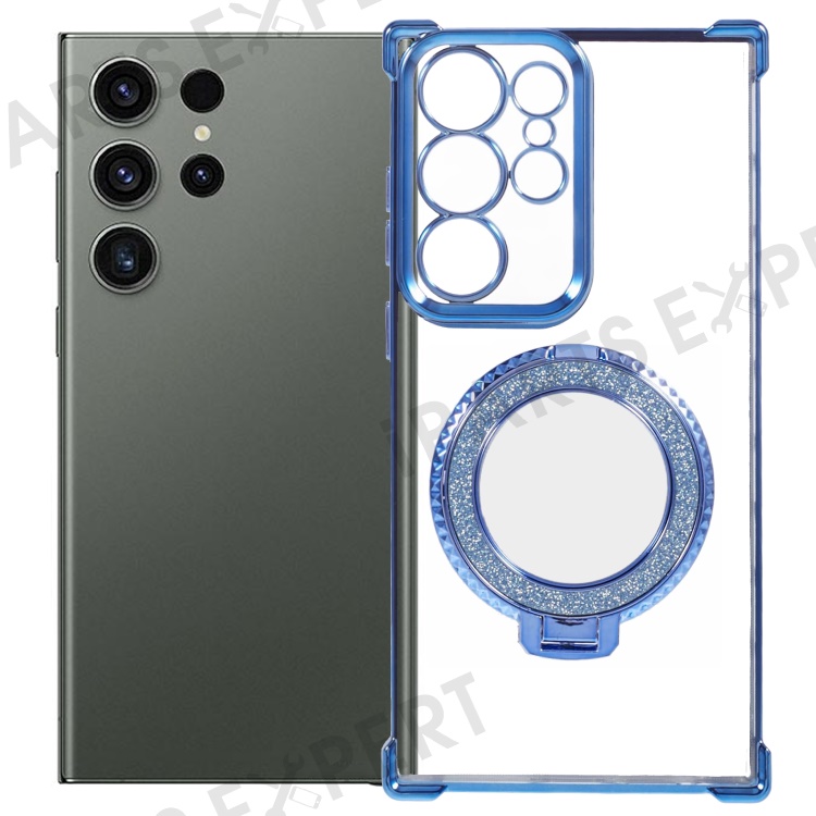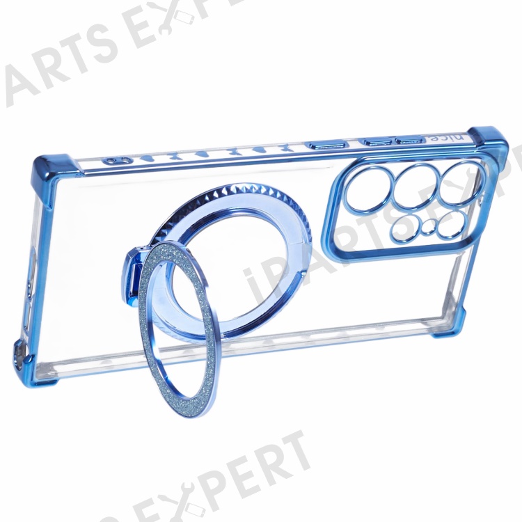 For Samsung Galaxy S23 Ultra TPU Case Electroplating Ring Kickstand Phone Cover - Blue
