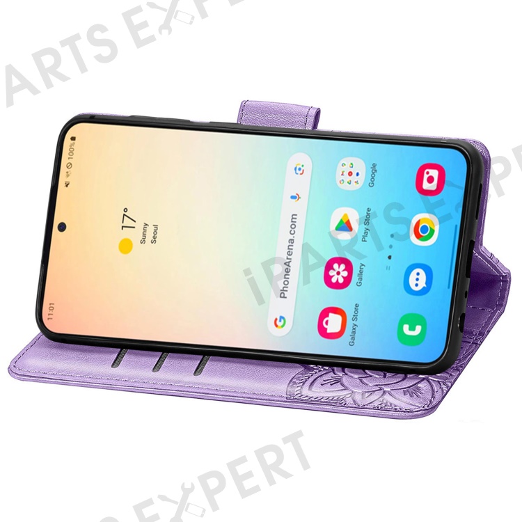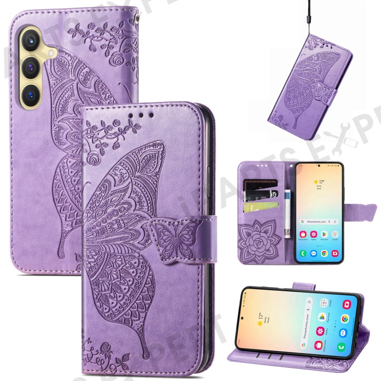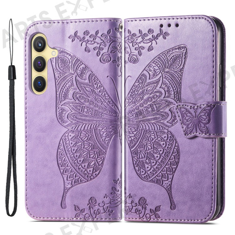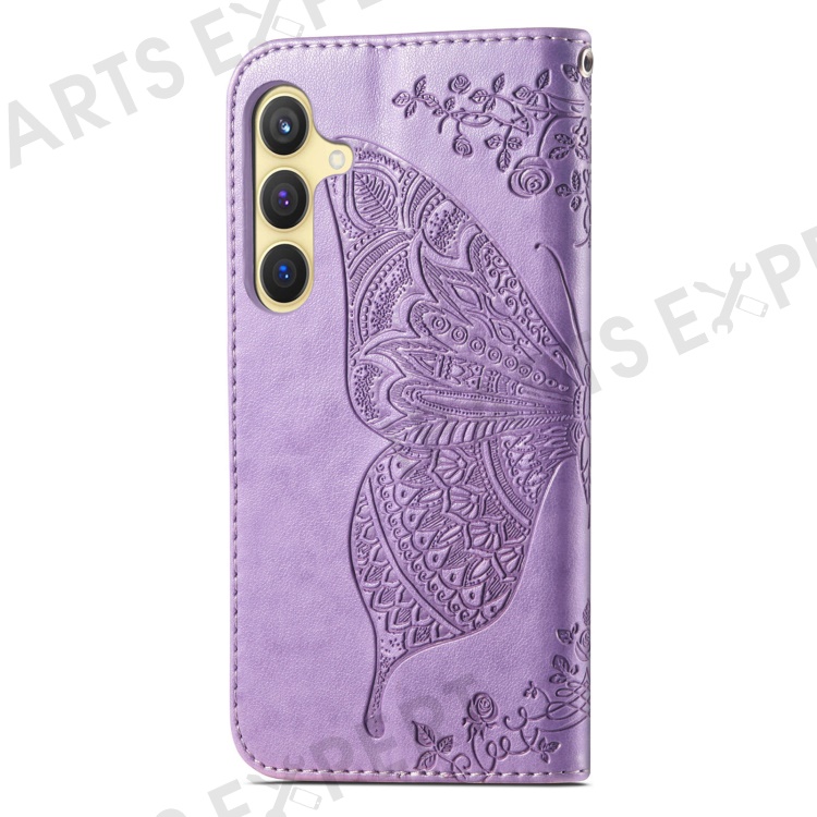 For Samsung Galaxy S24 Case Butterfly Pattern Leather Wallet Cover - Light Purple