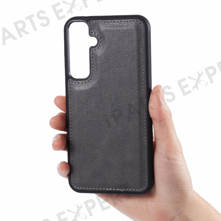 For Samsung Galaxy S24 Case Calf Texture Leather+TPU Back Phone Cover - Grey
