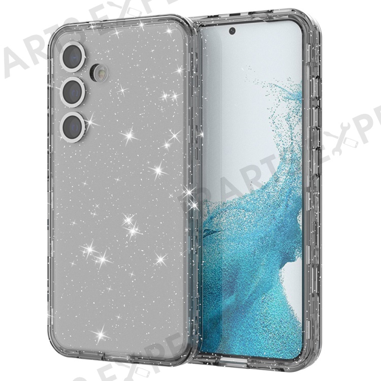 For Samsung Galaxy S24 Magnetic Case Glitter Clear Phone Back Cover with Lens Film - Transparent Black