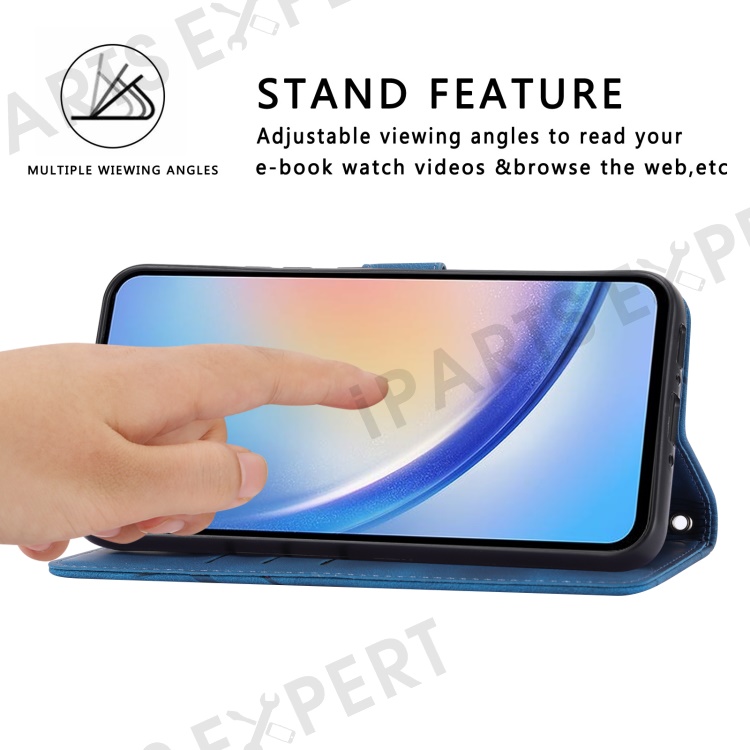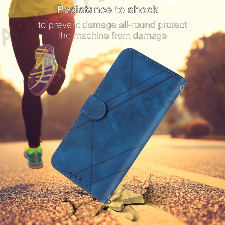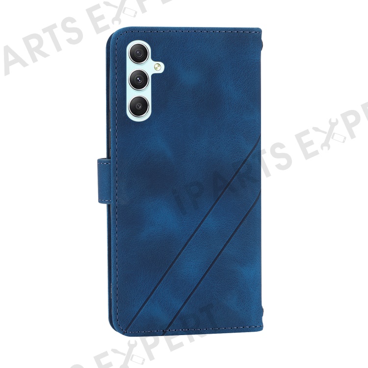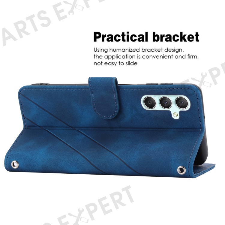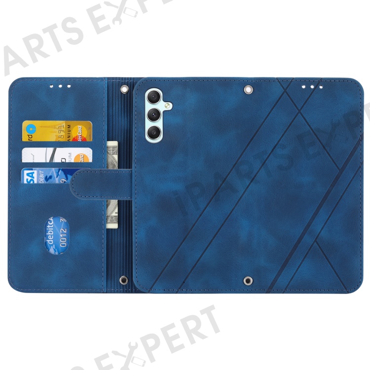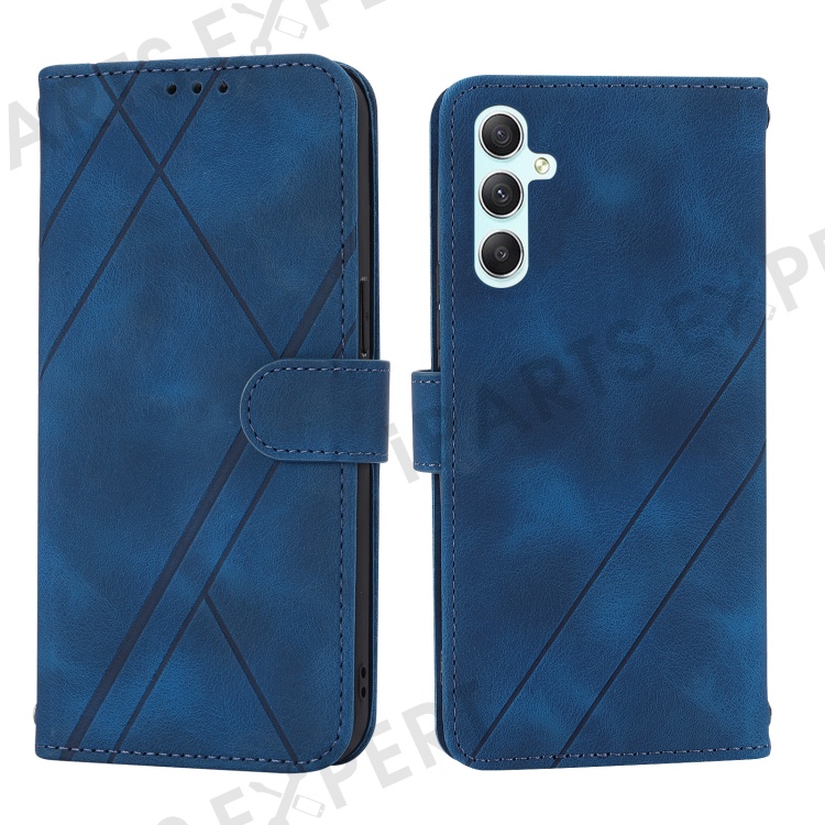 For Samsung Galaxy S24 Case Imprinted Line Wallet Phone Cover with Handy Strap - Blue