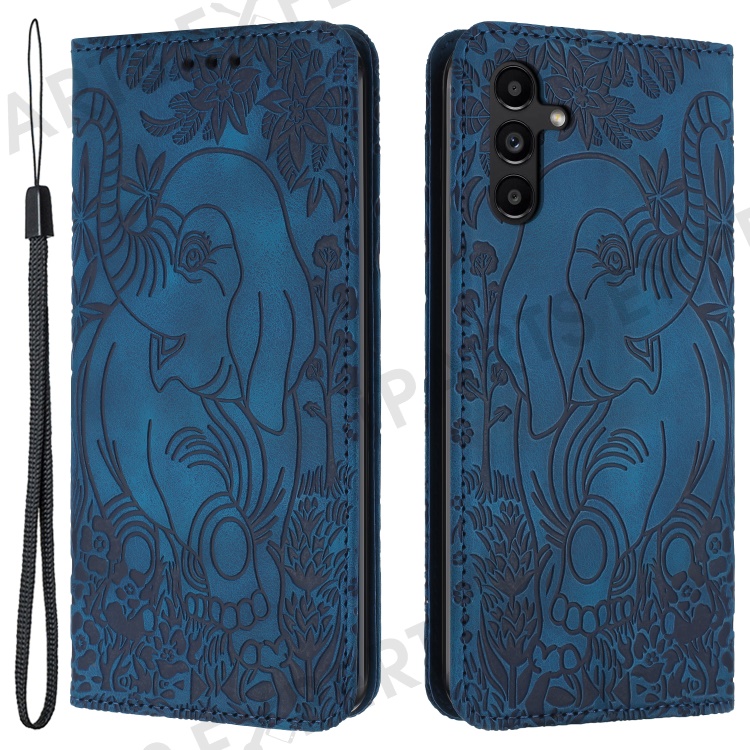 For Samsung Galaxy S24+ Case PU Leather Wallet Phone Cover Elephant Pattern - Blue