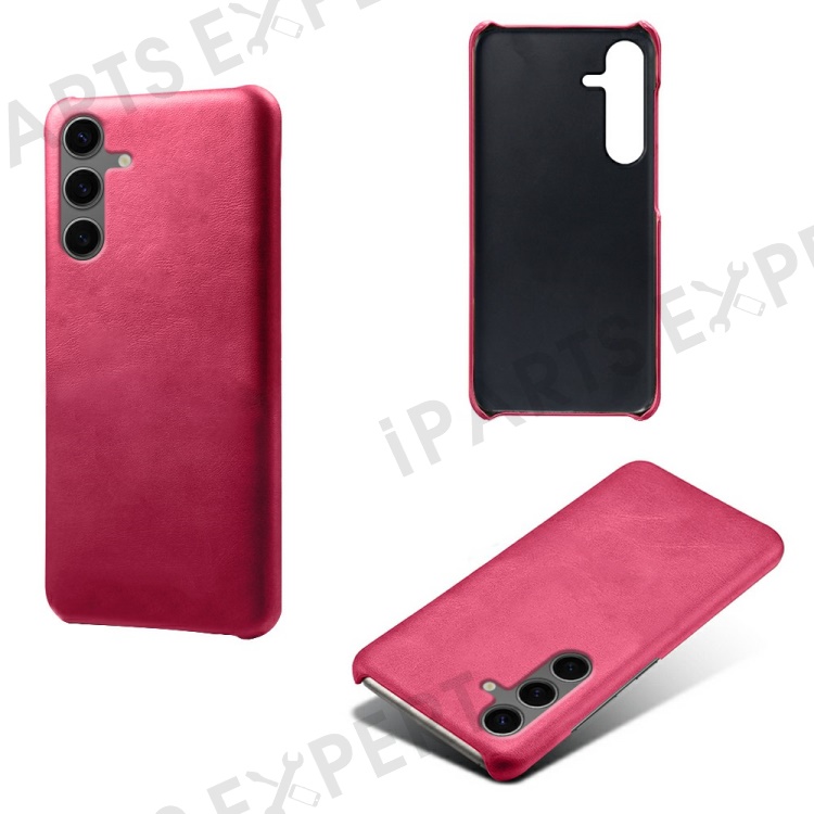 For Samsung Galaxy S24 FE 5G Case Calf Texture PU Leather Hard PC Protective Phone Cover - Rose
