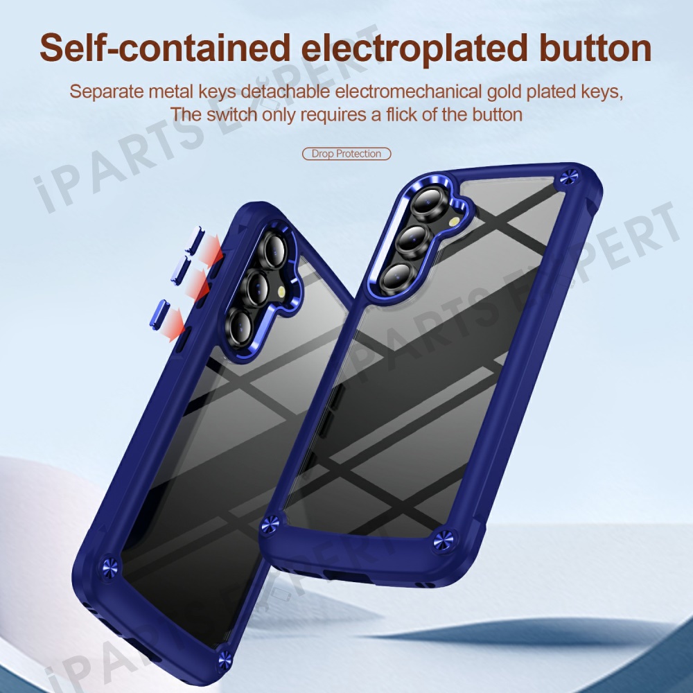 For Samsung Galaxy S24 FE Case Anti-Drop Alloy Lens Frame PC + TPU Phone Cover - Blue