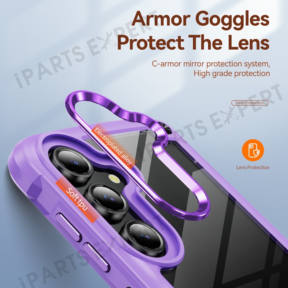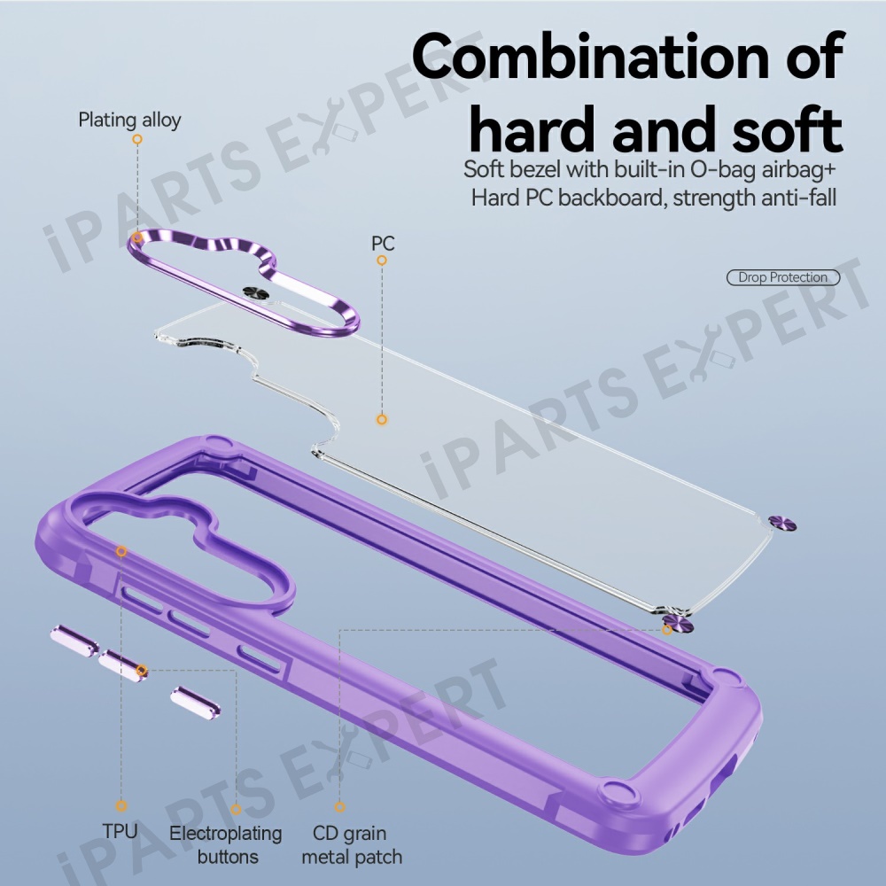 For Samsung Galaxy S24 FE Case Anti-Drop Alloy Lens Frame PC + TPU Phone Cover - Purple
