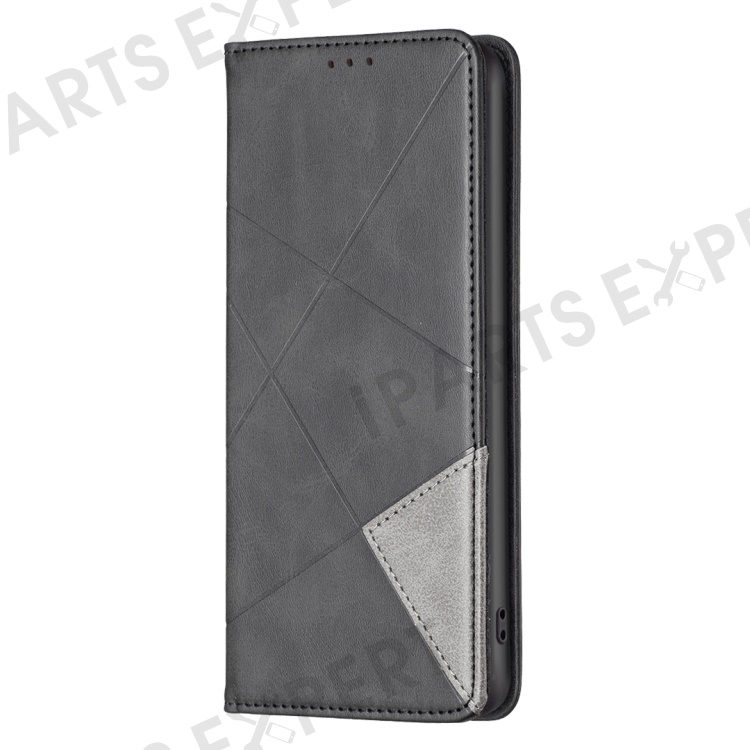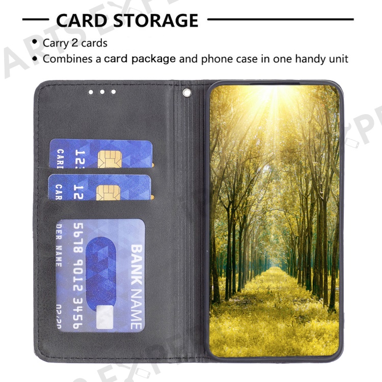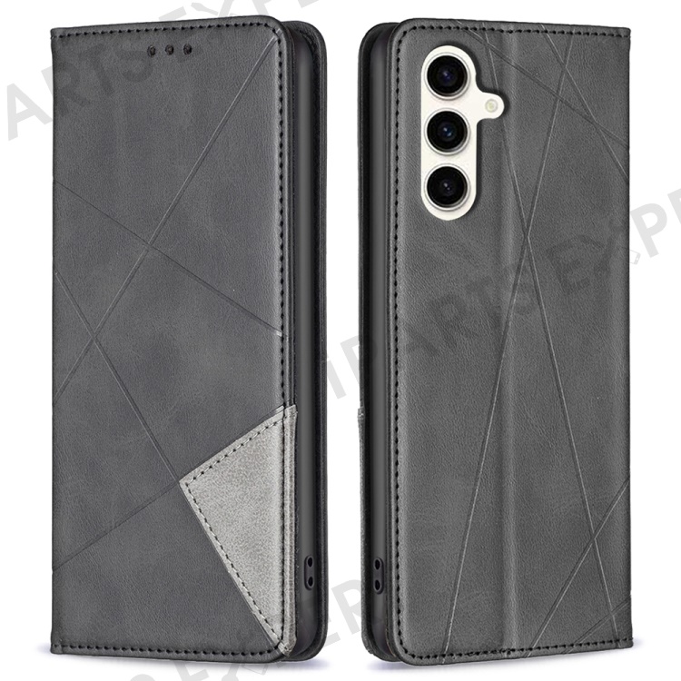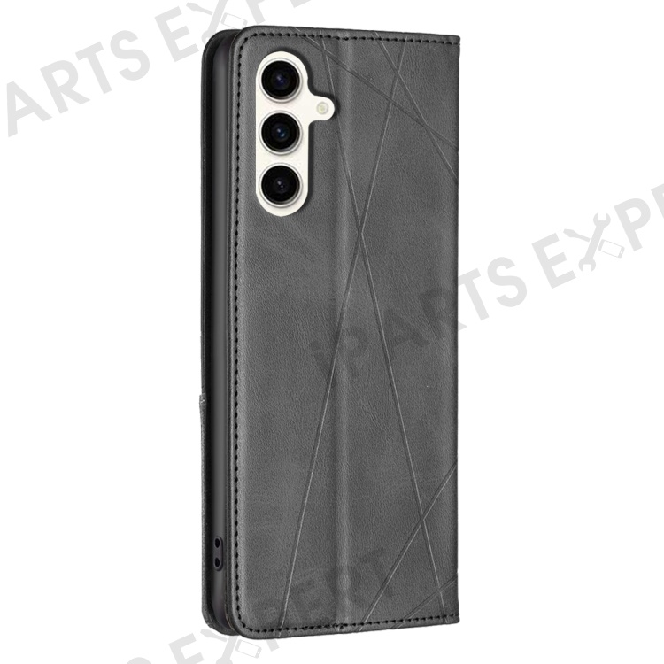 For Samsung Galaxy S24 FE Case Card Slots Leather Phone Cover Rhombus Imprint - Black