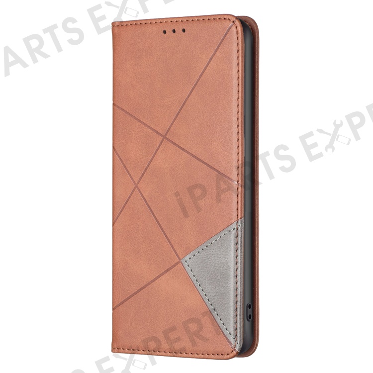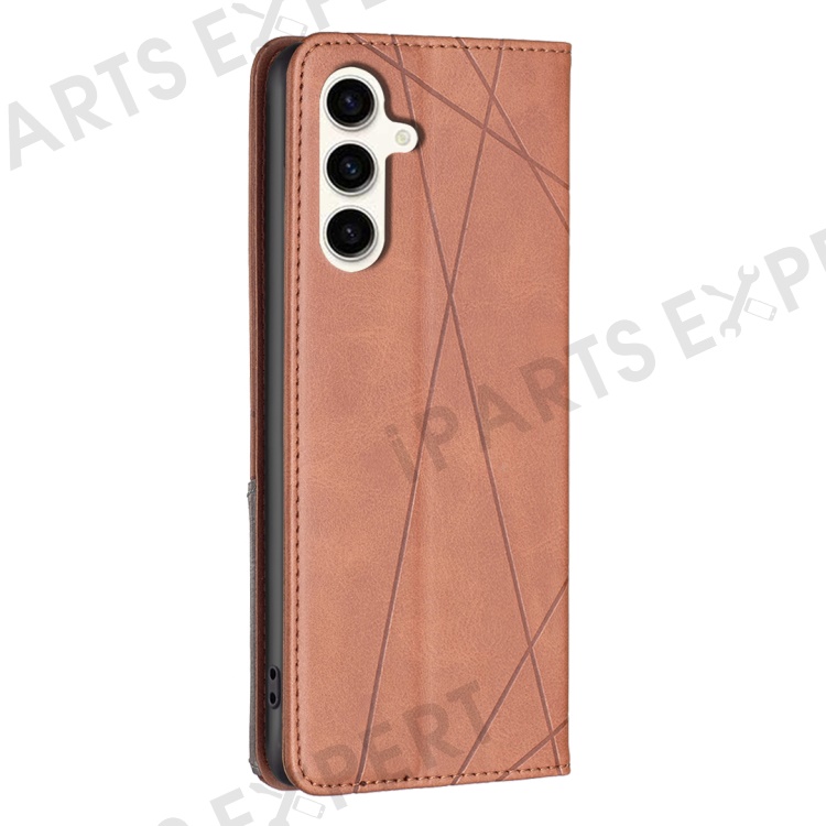 For Samsung Galaxy S24 FE Case Card Slots Leather Phone Cover Rhombus Imprint - Brown