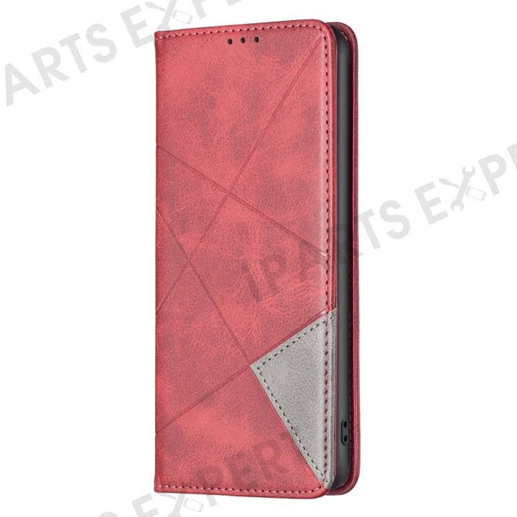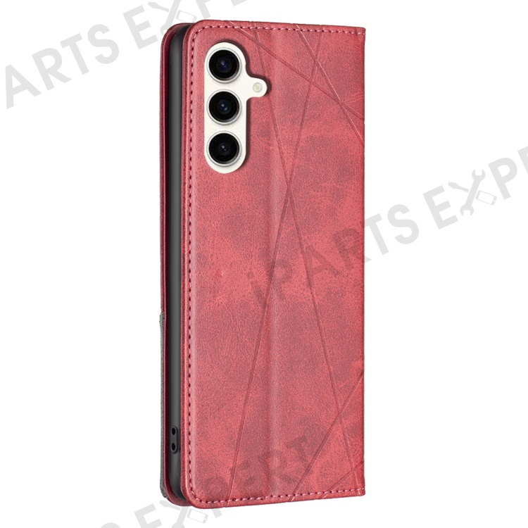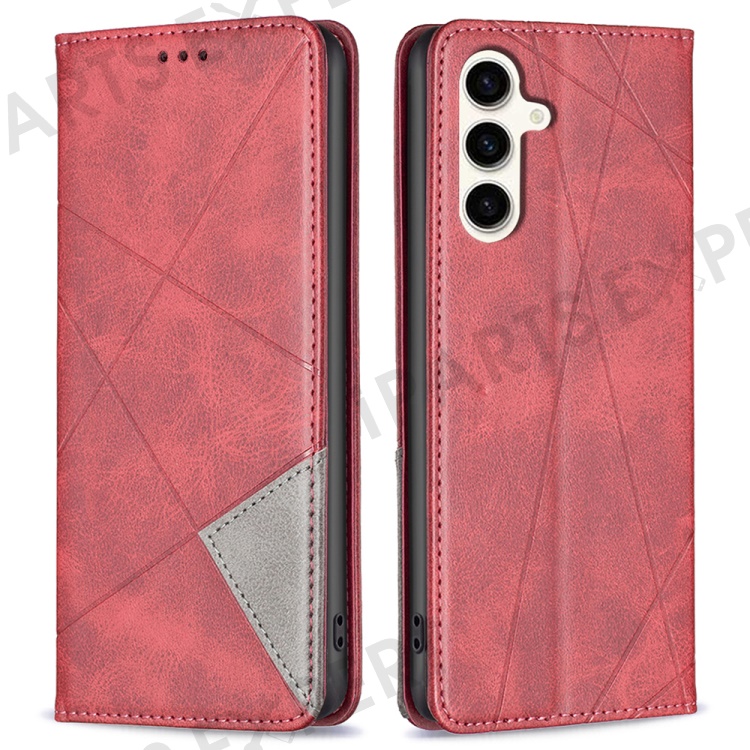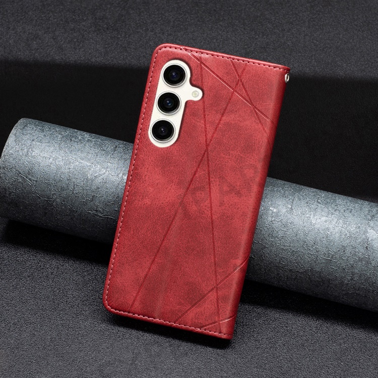 For Samsung Galaxy S24 FE Case Card Slots Leather Phone Cover Rhombus Imprint - Red