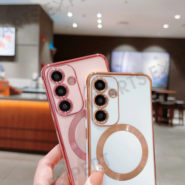 For Samsung Galaxy S24 FE Magnetic Case Electroplating TPU Phone Cover - Dark Purple