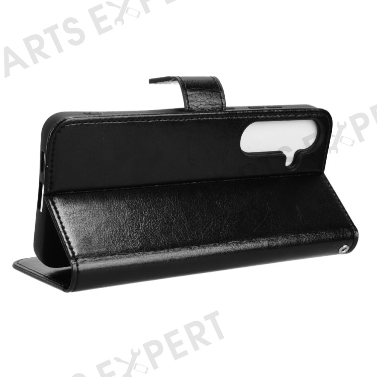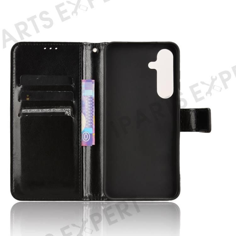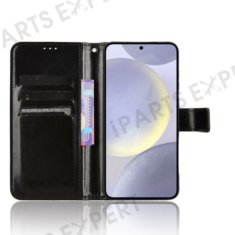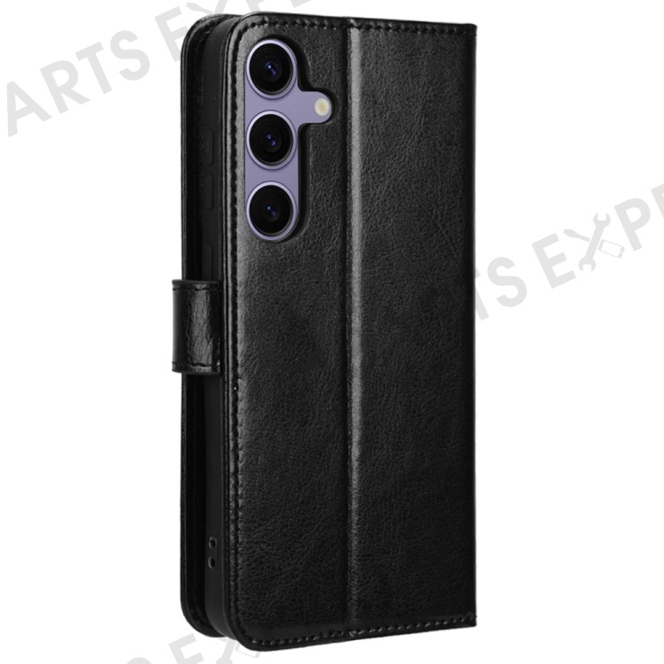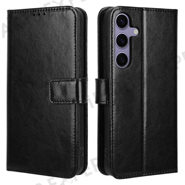 For Samsung Galaxy S24 FE Case Crazy Horse Texture PU Leather Phone Wallet Cover - Black
