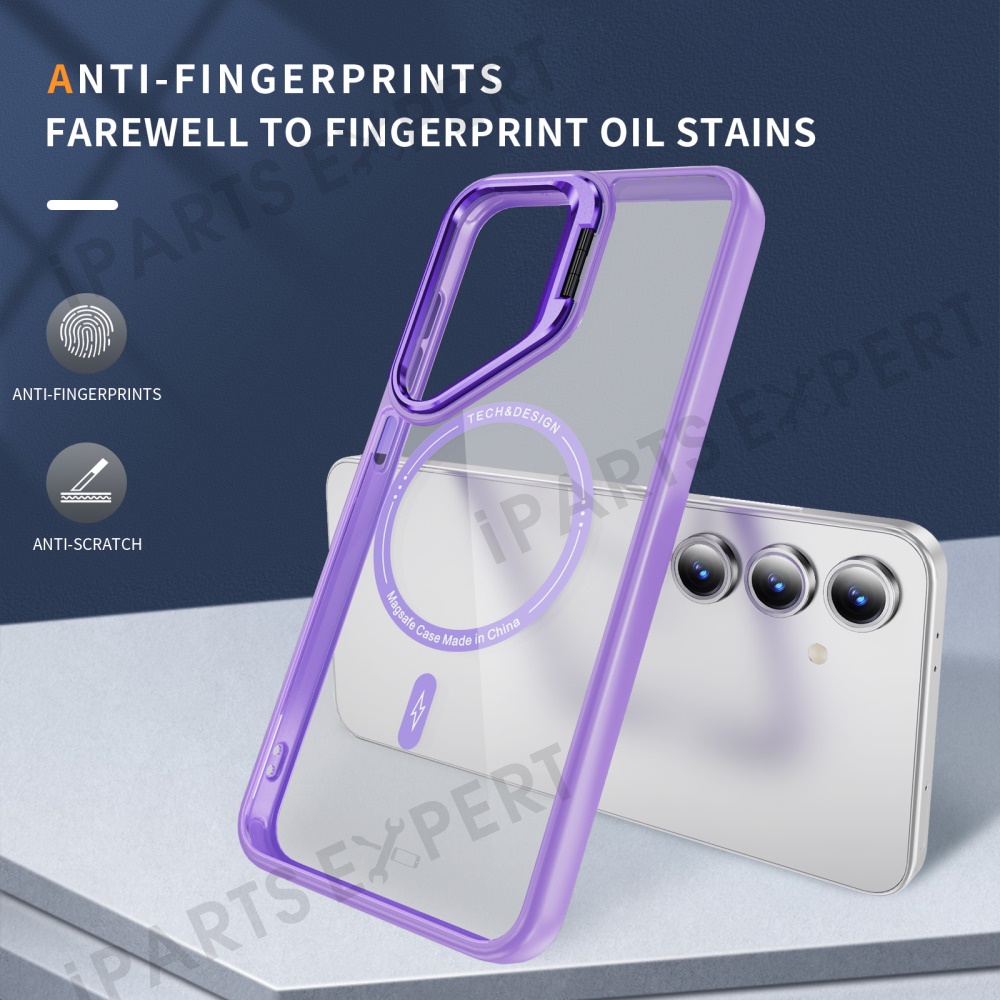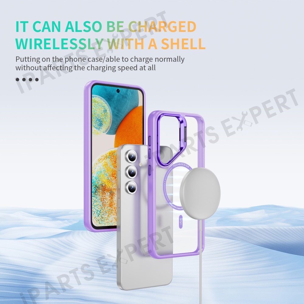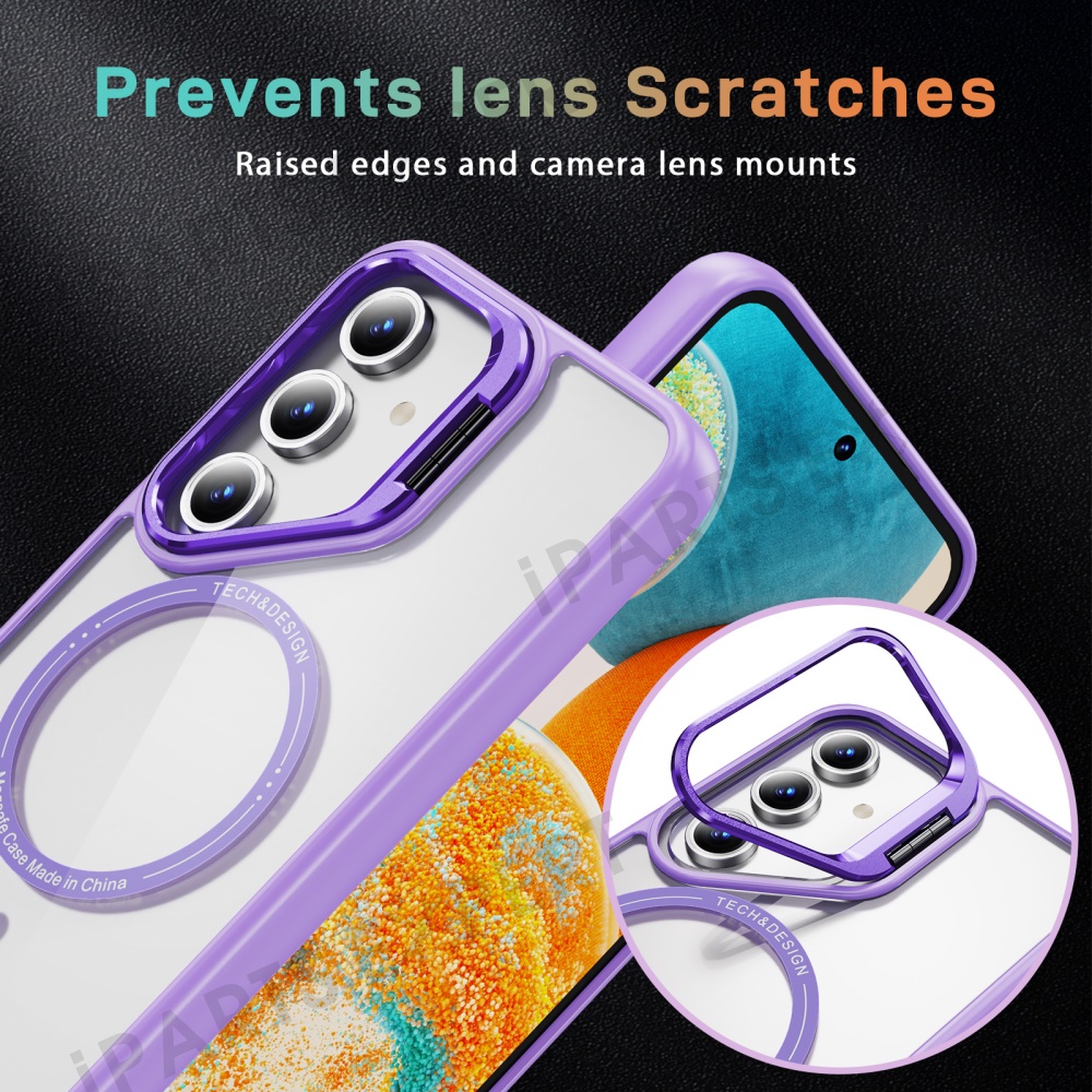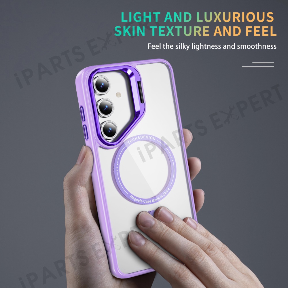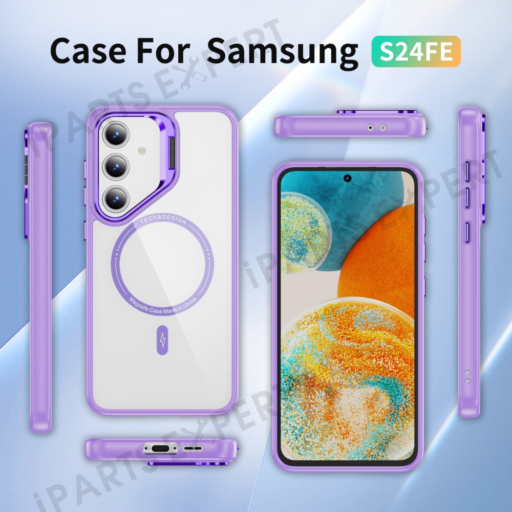 For Samsung Galaxy S24 FE Case Kickstand Clear Phone Back Cover Magnetic Case - Light Purple