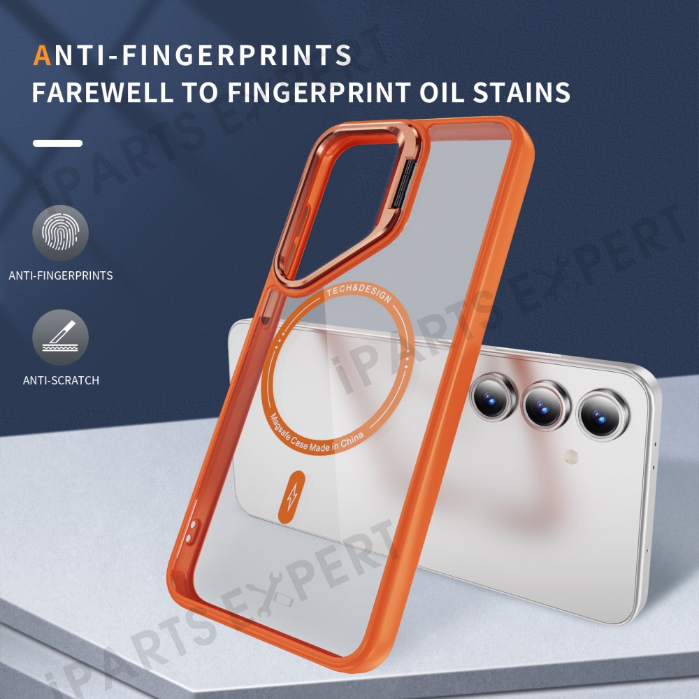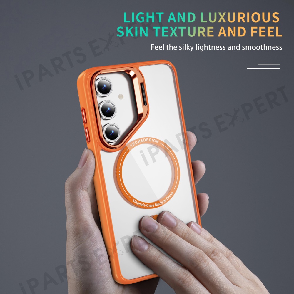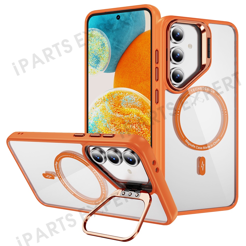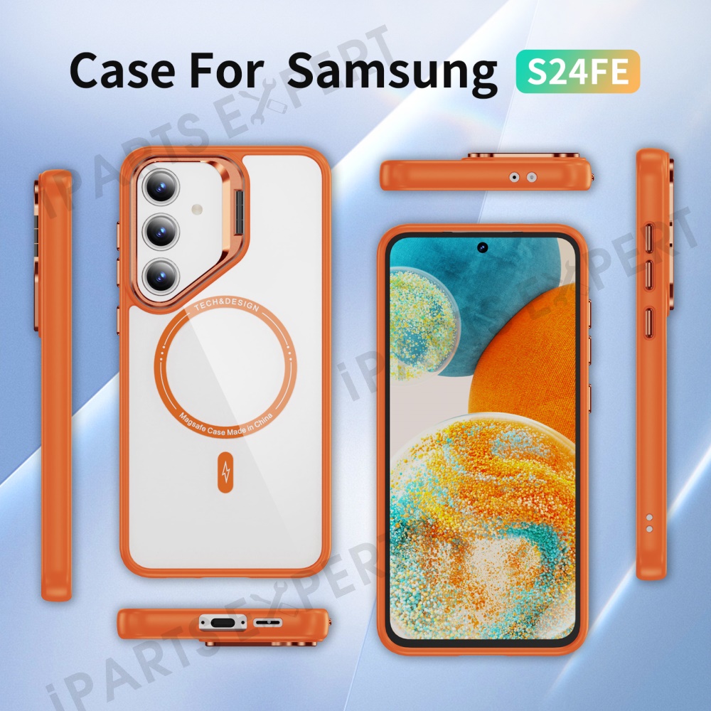 For Samsung Galaxy S24 FE Case Kickstand Clear Phone Back Cover Magnetic Case - Orange