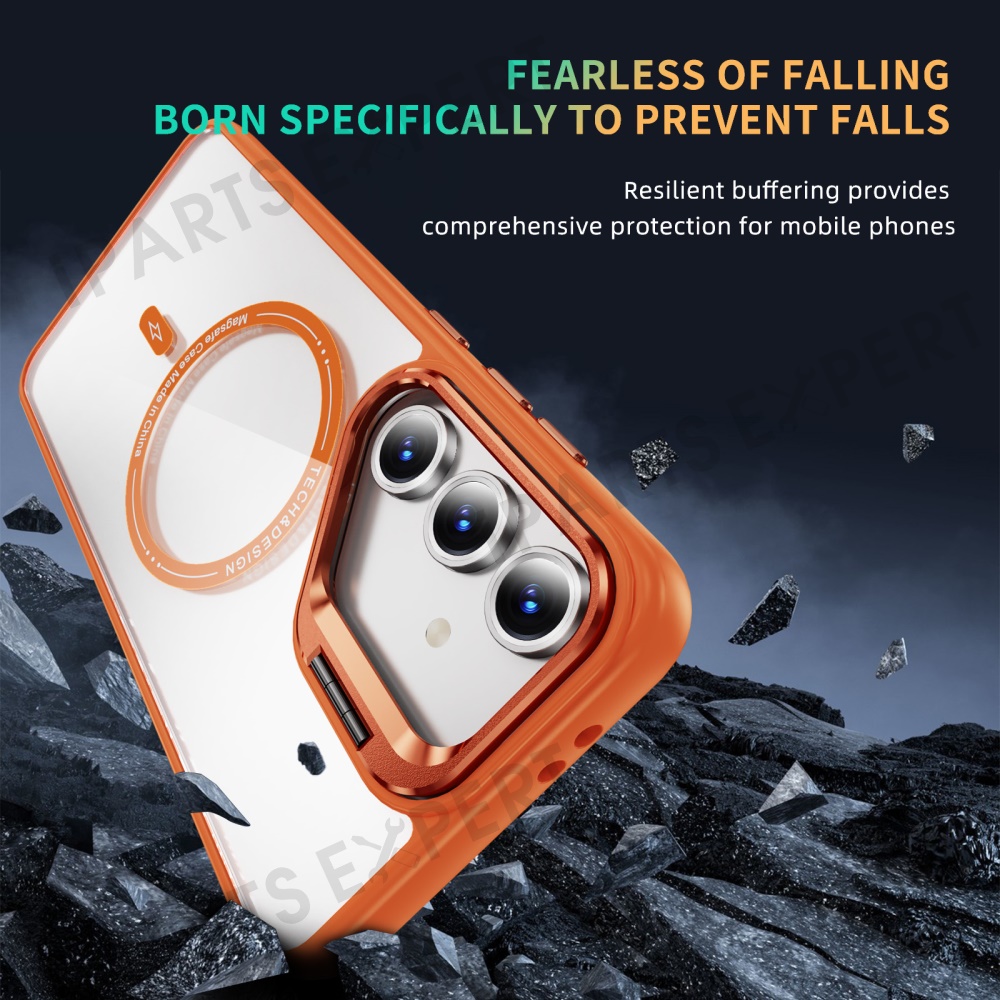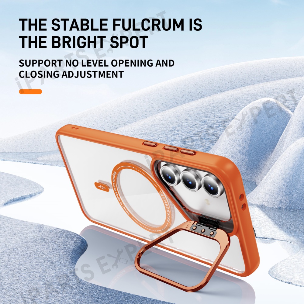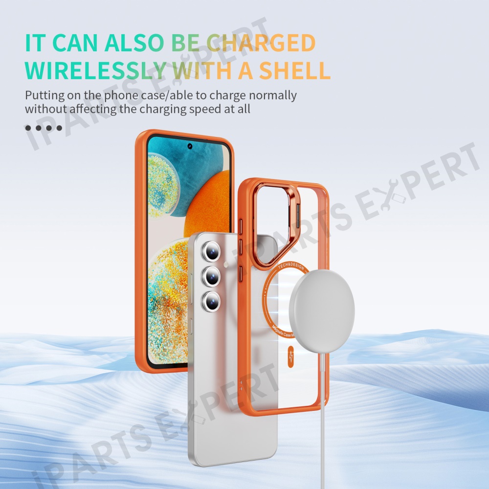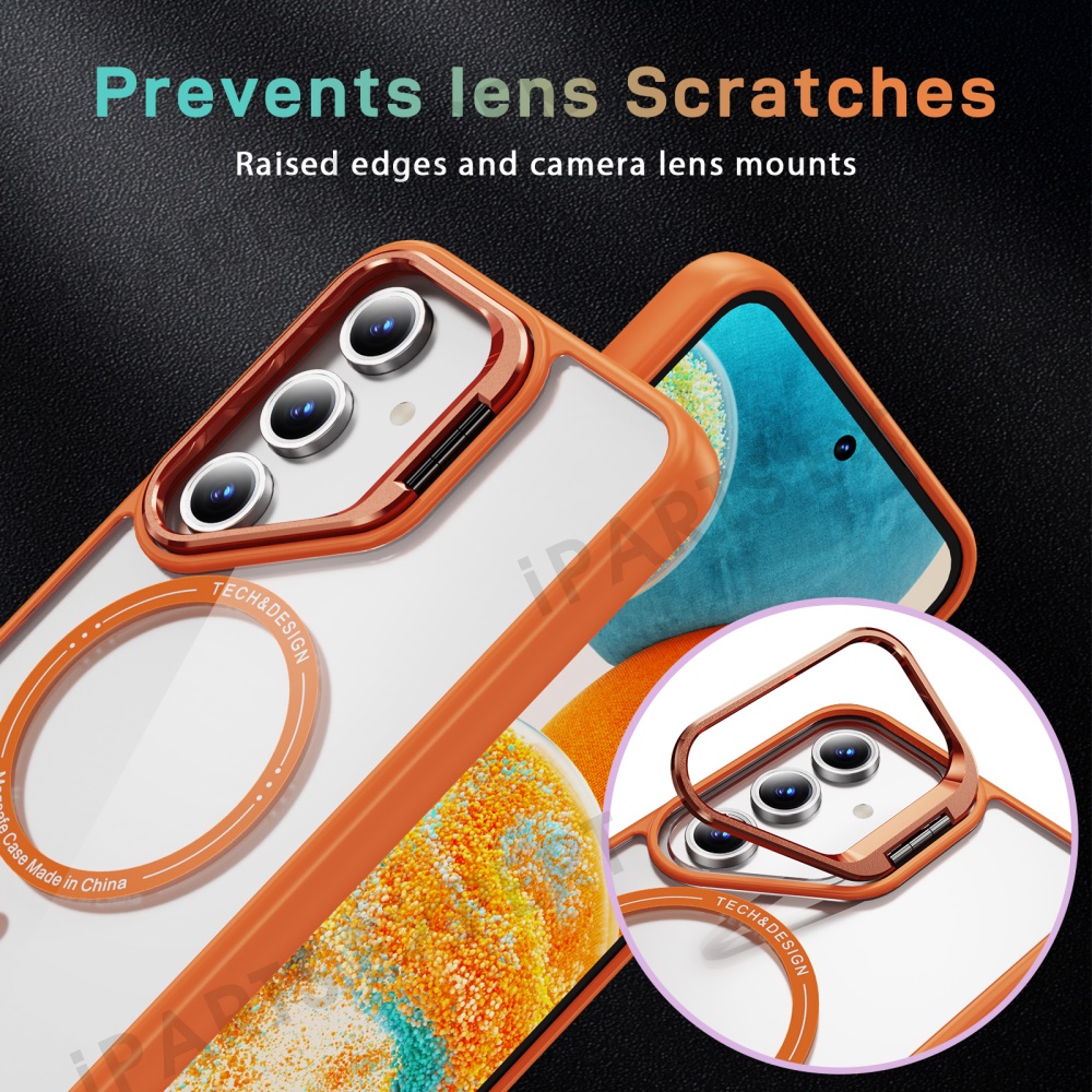 For Samsung Galaxy S24 FE Case Kickstand Clear Phone Back Cover Magnetic Case - Orange