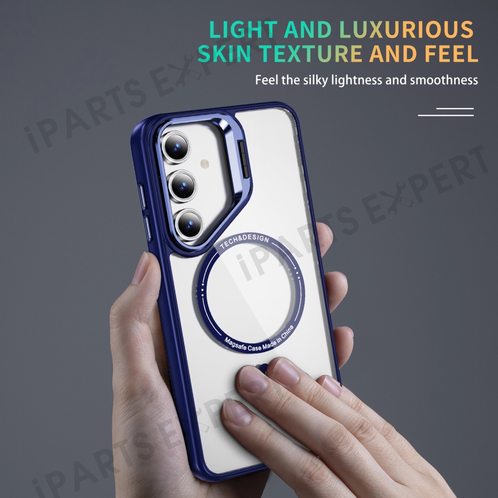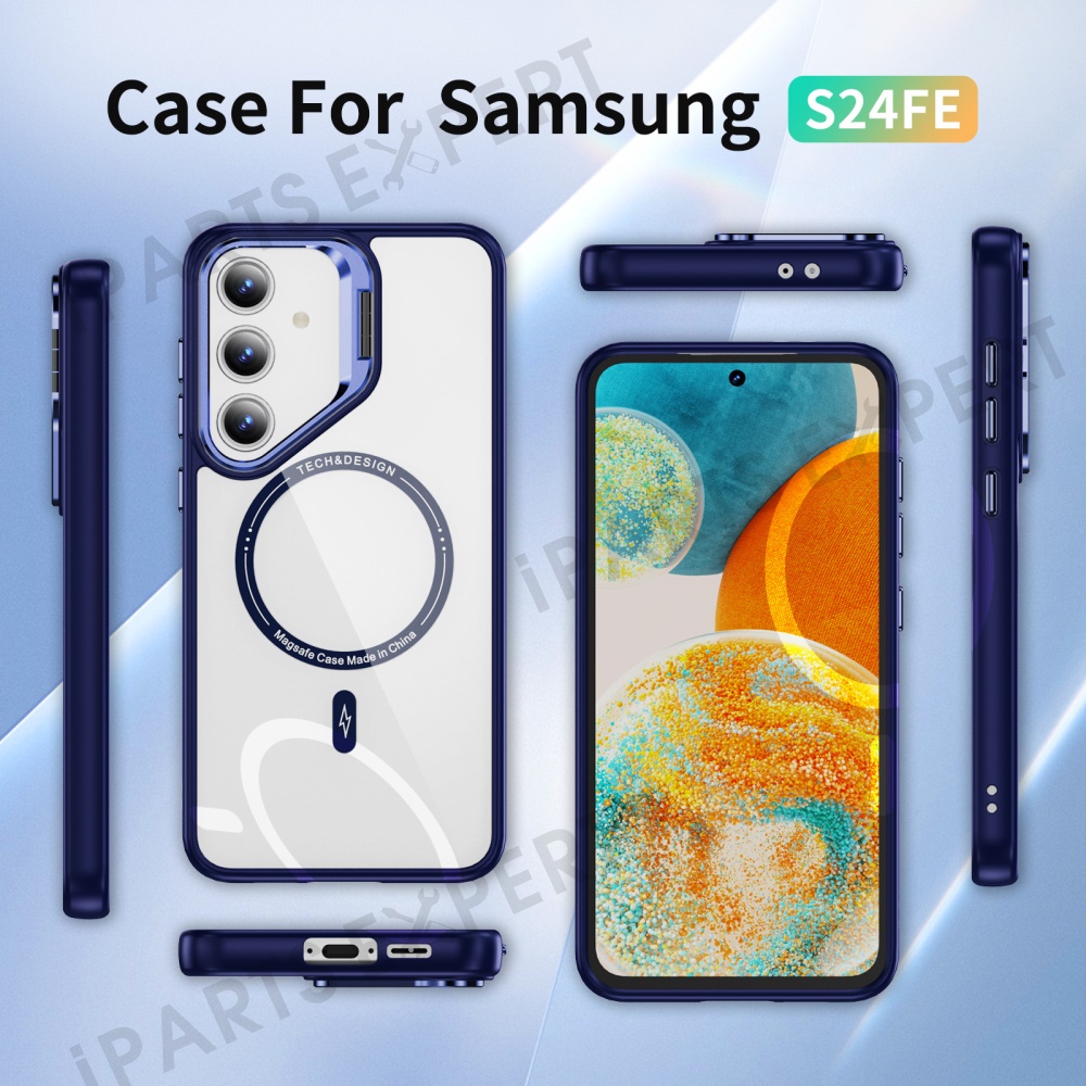 For Samsung Galaxy S24 FE Case Kickstand Clear Phone Back Cover Magnetic Case - Sapphire